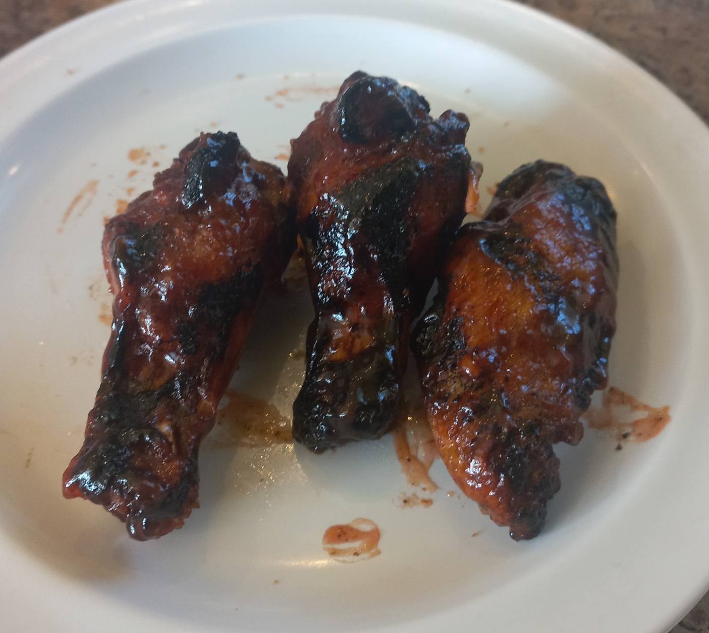Read more6/2023 We tried coming back here. See wings picture. About half of the wings had black on them, a little bit of char here and there. Ate 1 wing that had a little less char than the one on the left. It tasted burnt, was hard and crunchy where it was black, and meat was dry and stringy. So, I pulled out the 3 worst wings and called server over and told him those were burnt. First thing out of his mouth was they're not burnt, that's from the grill. No Paul, they are burnt. That's what happens when you put BBQ sauce that has sugar in it and leave it on the grill too long. Your cook should know that. After Paul's excuses, he did finally offer to replace them, but by that time I was done. If it looks burnt, tastes burnt, and has burnt texture, it's BURNT!