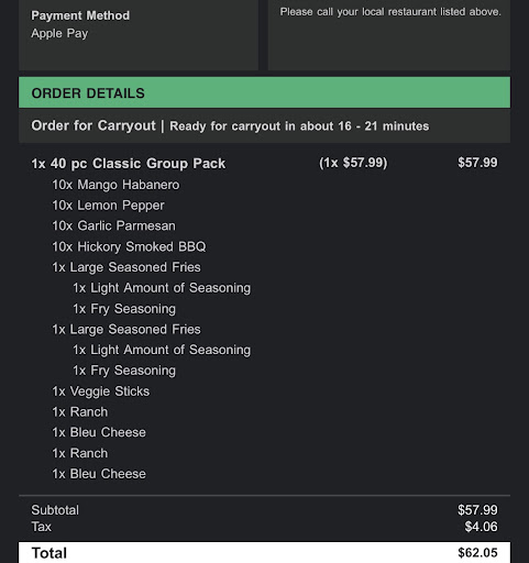 When I opened my order, not only did I have half flats (so they weren't out) they also gave me garlic parmesan with no Buffalo sauce at all.