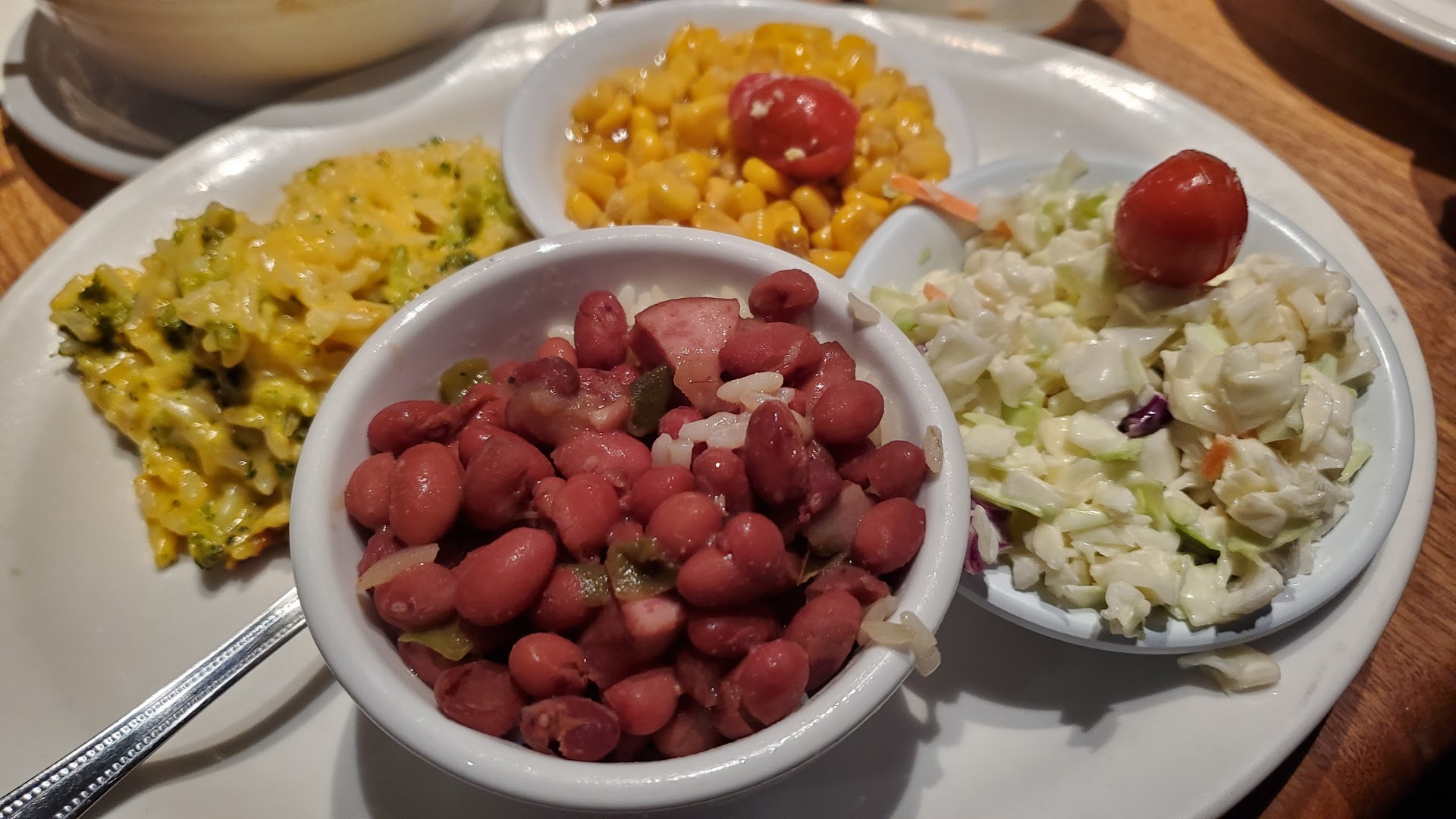Main courses - a full rack of ribs that supposedly come with Honey BBQ sauce on them that came with 2 sides, we chose the "Made From Scratch" Cheddar Broccoli Casserole. My wife had the Monte Cristo with Fries. We typically share meals when they are this large, and holy moly we were both disappointed.