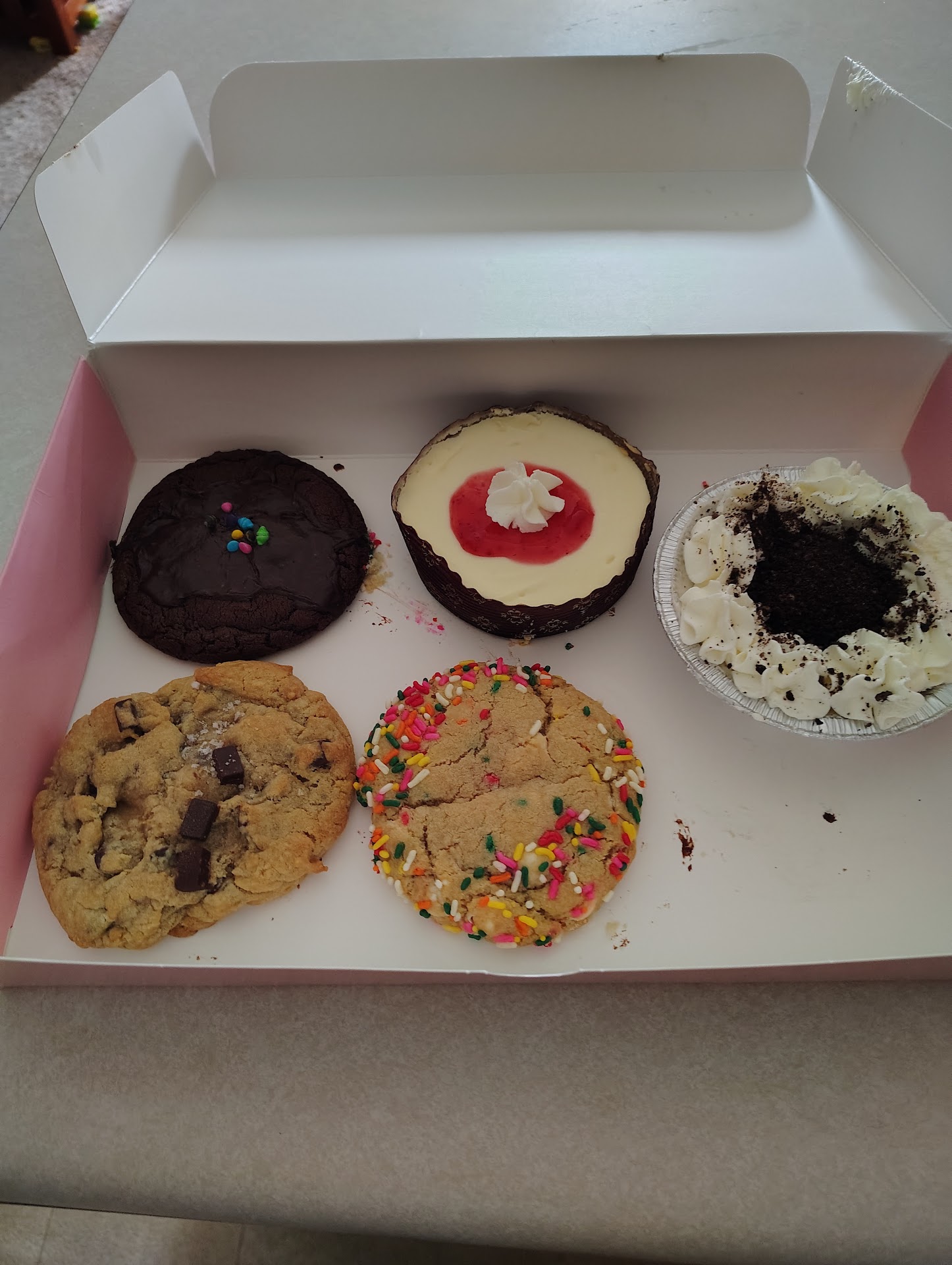 I really want to like this store - it’s a drive to Cedar Rapids, but I have been super disappointed for 2 out of 3 weeks - the peanut butter cup cookies- one with no topping and the second with two tiny bits, the raspberry cheesecake (really, there couldn’t have been a little more raspberry jam on it?? - that is the star of the show). I did not even buy the oreo milkshake cookie today, which is a favorite of mine when it comes around and I was looking forward to it. It matters how the crumbs are mixed in the frosting- one way produces more grainy frosting and the correct way results in the true “milkshake effect “. The Cedar Rapids store has always gotten it right. Cookies that are this expensive should look and taste...