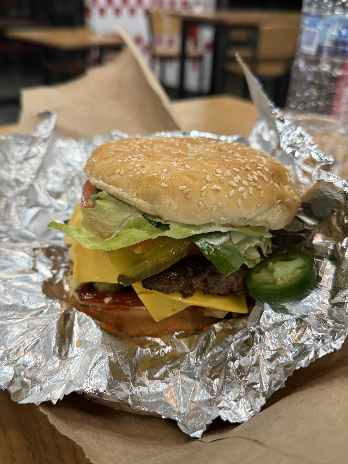 We ordered a cheeseburger loaded with all the sauces, and it really hit the spot—even when it’s -15 degrees outside. Next time, we’d probably skip the cheese since it is a bit oily and keep the mustard for that tangy kick—it added just the right flavor boost. The best part about Five Guys is the endless customization, so you can make your burger exactly how you like it.
