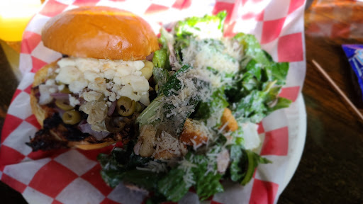 Ordered a burger which was really good. No fries thought, choice of chips. Had a bottle of beer which was a little spendy. Female bartender was really nice but there were alot of regulars there so she kept busy. Alot of people playing outside volleyball and drinking. Alot of activites both in and out of the bar too do. Also numerous tv's to watch sports.