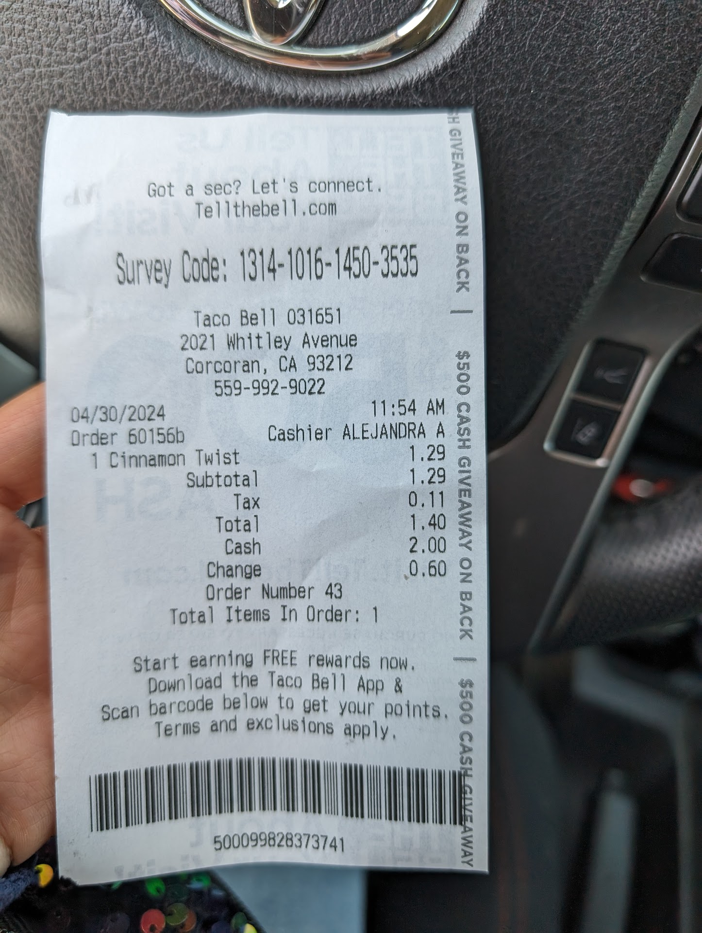 It was lunchtime and I found myself in the middle of nowhere –Corcoran, California, when I spotted a Taco Bell, my favorite fast food restaurant. I decided to stop and order my favorite meal, the Crunchwrap Supreme. I began placing my order on the kiosk when I suddenly realized I needed to use the restroom urgently. I didn't think I could finish the order without having an accident, so I kindly asked the customer service representative behind the counter if I could use the restroom. I even explained to her that I was human, just like her, and that sometimes we have to go. However, she rudely demanded that I first make a purchase, and then walked away without taking my order. I had even explained that I intended to buy something, but I really needed to use the restroom immediately. Having worked in fast food for over three years myself, I never treated a customer this way.