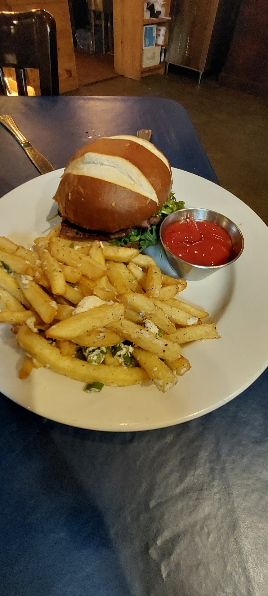 Appetizers: We ordered the empanadas and the charcuterie board. Unfortunately, my photo of the empanadas only shows half of an empanada. There were 3 and they were great. We ate them quickly. Then we remembered the camera. The charcuterie board was unique in that it contained a very nice portion of expertly cooked steak, cut into pieces for easy sharing. I also was particularly fond of the house-picked vegetables and the sausages. My thought after sharing it was "if I come back, this is could easily be my meal."