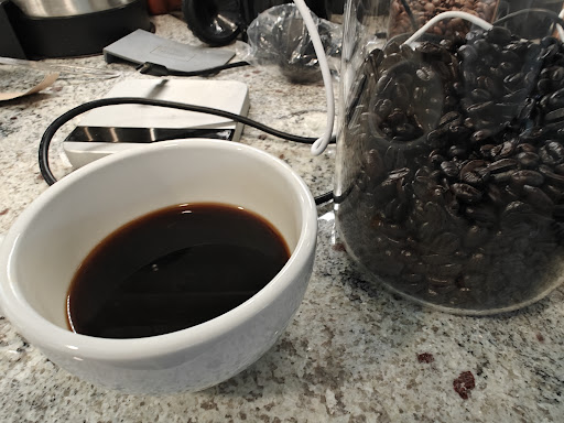 Combs sent me fresh roasted beans. The moment I opened up the UPS envelope, the aroma engulfed me in a warm hug of happiness and comfort.