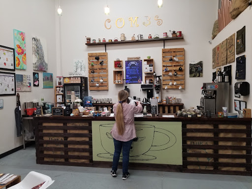 Read moreI came in earlier today with my mom, we like to hang around coffee shops and were in the market for a new one, so we ended up at Comb’s after a brief google search. In trying any new coffee shop, I tend to be considerably anxious about it because I’m a little picky about how my coffee is made but oh. My. God. Upon first entering it was fragrant, and welcoming, and the atmosphere, despite being virtually windowless, was unique, cozy, and very friendly. As was the staff! Amongst being super knowledgeable and passionate about coffee, the man had a lot to say about it, and I thought it was really interesting learning about it! I’ve also never seen a coffee shop so passionate about what it’s selling. AS WELL AS SOLAR POWERED!!!! SOLAR!!!!!!! POWERED!!!!!!! That’s so sick!!! I appreciate that a lot! This also had to be some of the best coffee I’ve ever had. It had this like perfect balance of having that coffee flavor, without being too bitter, or overpowering the other notes in the drink. I ordered an iced mocha (I think? It’s been a long time since this morning), and it was smooth, nutty, and altogether just amazing. I’ve had nothing that compares to it. There are also tons. And tons. And tons of options in terms of drinks. Was it a little hard to find the shop? I mean, sure, but it only took us one lap around the row of buildings to notice the entrance sign and figure it out! The mural also helps give it away. And was it also a little pricey? Yeah, but to be fair, coffee is expensive these days, and it honestly probably isn’t the most I’ve ever spent on a coffee, and it’s great quality too anyways! Give it a shot if you ever have the chance, well for sure be back next we have...