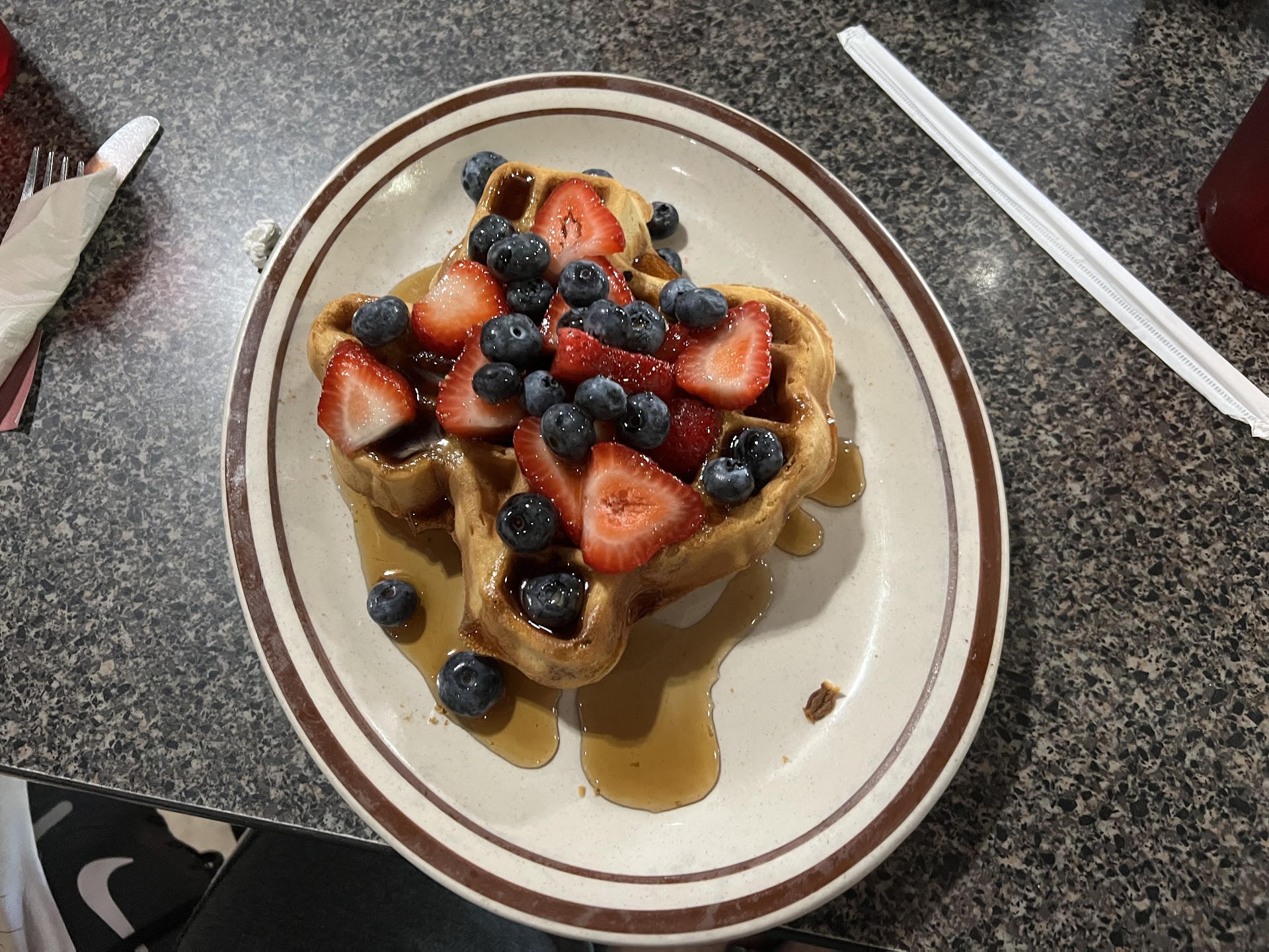 After seating a waitress came over and told us our waitress was delivering food to another table and she would be right over but instead of making us wait, like most places, she took our drink order right then and got us what we asked for.