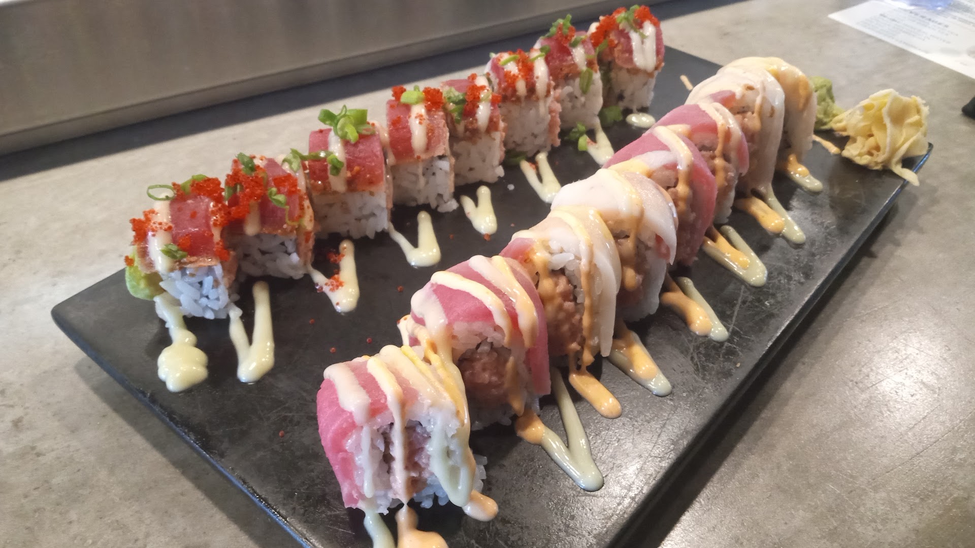 Read moreI do not like to write negative reviews and I normally really enjoy Coolfish (might be because it is the only late night place that stays open in the area) but tonight was not good. I could chalk it up to being a rainy Monday but customers on a rainy Monday should receive the same food and service as customers on any other day of the week. When my husband and I arrived, the "hostess" was sitting down and even though she was pleasant, she didn't seem interested in seating us. Our server stopped by and got drink orders, then came back to get food orders at which time we told him that we needed to have the bill split so that my husband could expense his portion for work. My husband's food came very quickly. My app came next and it was mushy and not as well prepared as usual (tempura asparagus)....and then I waited and waited for my meal (waffles and chicken appetizer). A different server said that it would be out shortly....and so I waited again. Our original server stopped by and asked how everything was....at this point I asked for my meal to go because my husband was almost done with his dinner. Another server stopped by to apologize and said they were having trouble with the waffle iron...if I would have know that earlier, I would have ordered something different. A few different servers stopped by to ask how our meal was, and each time I said that I would let them know when I ate it at home because it didn't arrive in time to eat in the restaurant. Finally, a different server from the one who took our order came by with the bill and it had not been divided like we asked, but we didn't make a fuss and paid it anyway. But wait...ANOTHER server stopped by and asked us if we were ready for our check...even though we had just paid it. Yes, all restaurants (and all businesses) have an off night but tonight was EXTRA off. The many different servers who stopped by were all nice (well, our original server was a bit bothered that he had to work on a Monday it seemed) but they all were a...