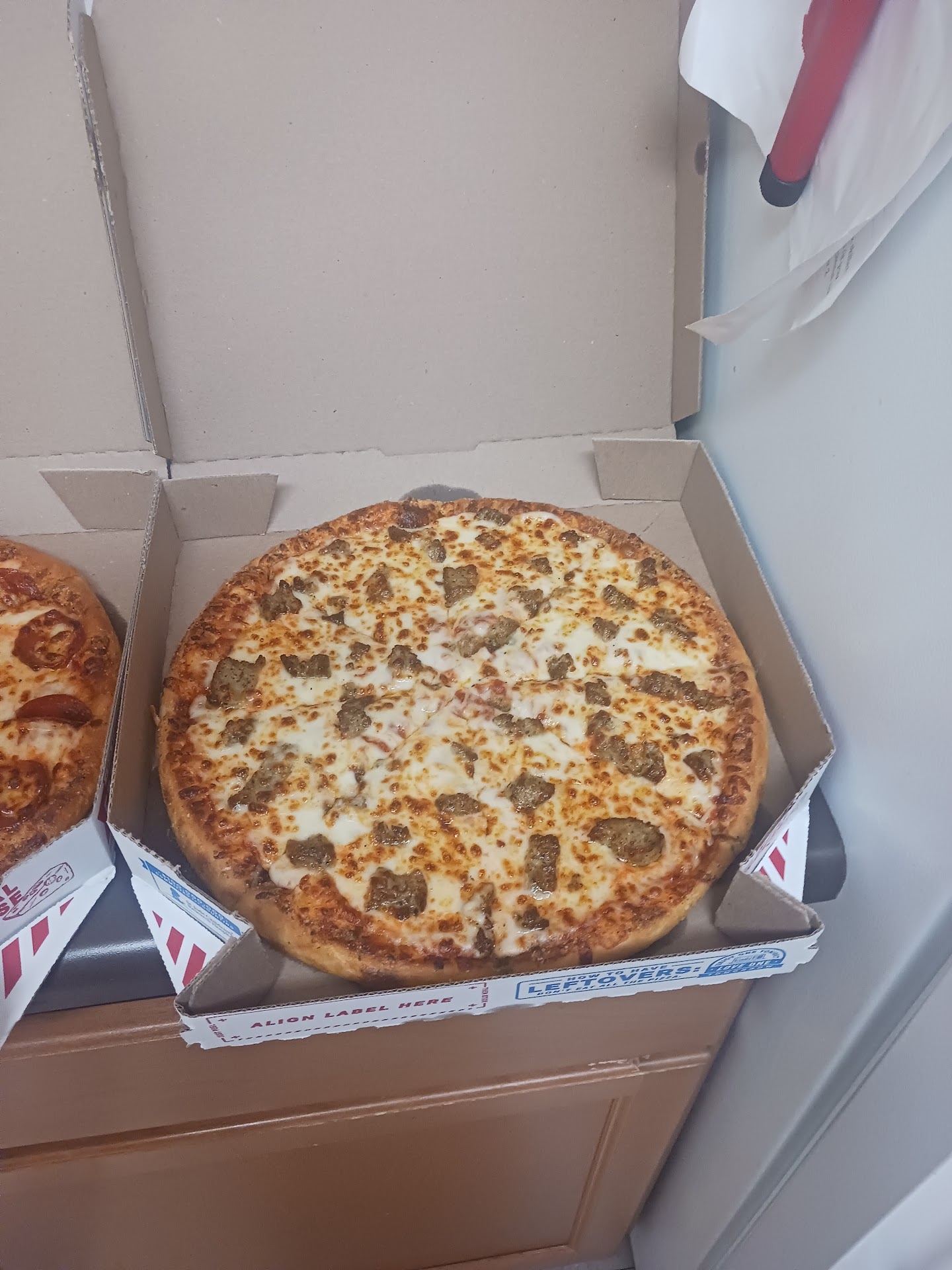 Read moreThis location has made a mistake more than once, so really this should say start with a, "fool me once shame on you..." Bacon has been placed on a vegetarian item previously. We asked for a refund after that mistake, but this branch will only give you a store credit of "7 days" to redeem one item. This store refuses to refund money for an error. Today, we ordered a pizza early (11:00am), so we could eat as we were moving out of house. The estimated deliver originally was 18-38 minutes. At 11:45am, we call the store, as the pizza tracker said a quality check was being performed at 11:09am. The young lady working at this location states the, "tracker is what it is...and your food will be delivered in 15 minutes". Well, the food arrived at 12:34pm, an hour and 30+ minutes from time of delivery. As you already guessed, there is no partial refund. Bazinga! You earn one item as a "I owe you" with a seven day limit to retrieve. What a racket. At the end of the day, it's my fault for knowing better at...