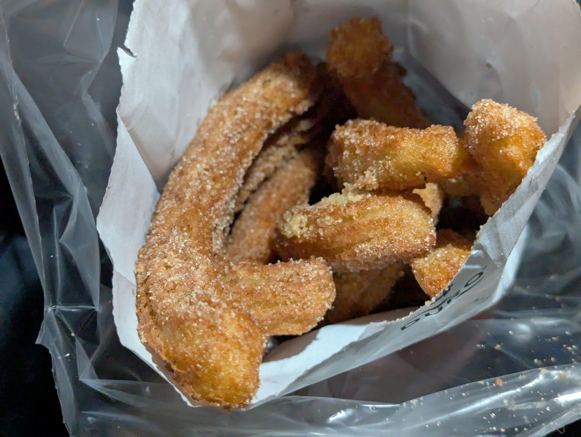 Read moreWent late at night for some Esquites. He had to make them fresh and said it would take about 10 mins (it was only about 5 mins) and comped us some churros. We thought that was so sweet because we didn’t even bat an eye to the wait time and yet he still gave us some. Owner or Boss is very sweet wish I...