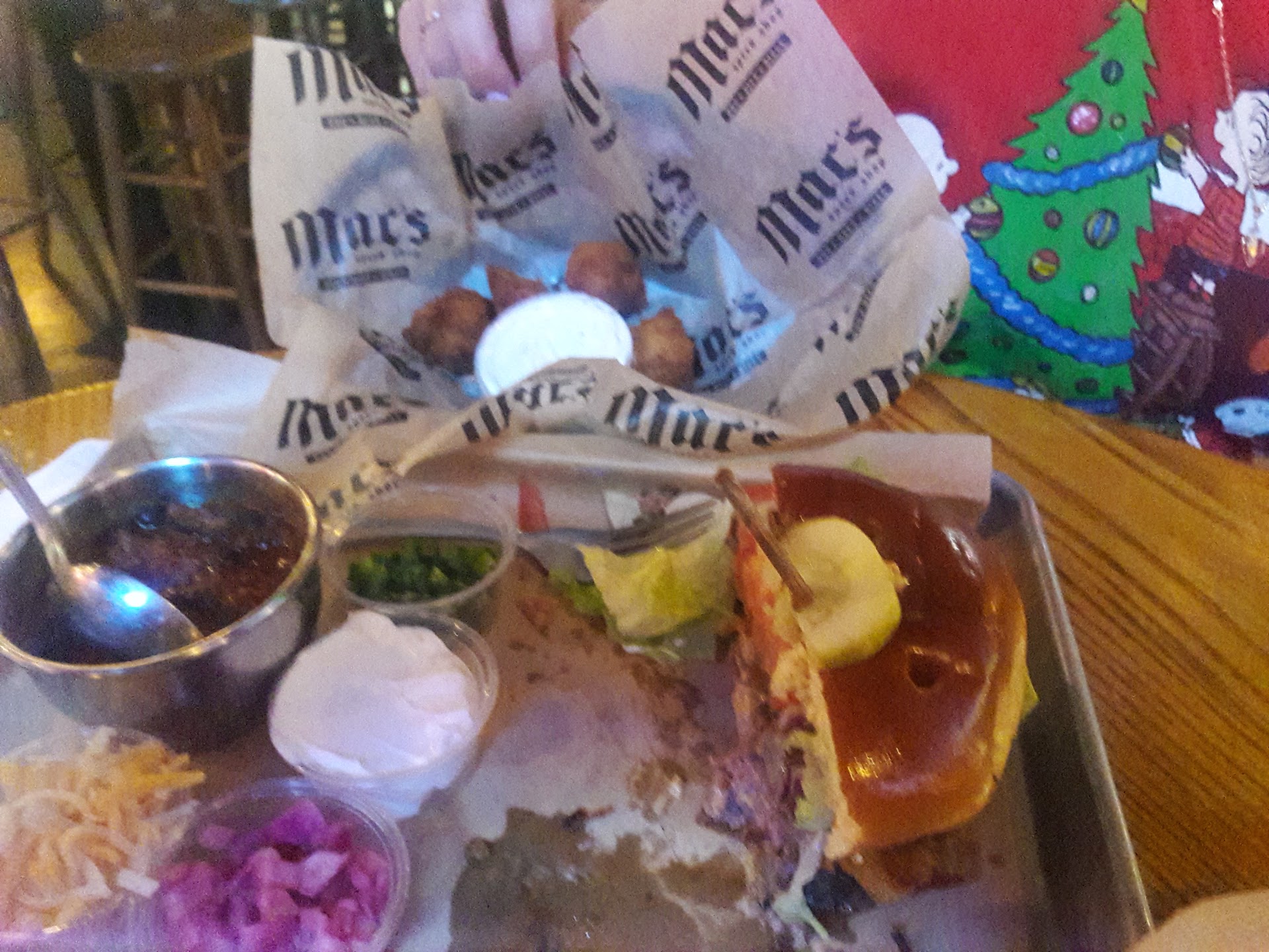 We had the Mac's nachos at first... WOW!!! Shredded chicken but you have the option to do pork or chicken. Queso, jalapenos, black beans, sour cream along with salsa. Honestly these were some of the best nachos I've ever eaten. (Didn't get a chance to take a picture of this appetizer.)