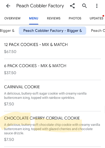 Read moreMy husband and I tried this place a few months after it opened the cobblers were tasty but for the then price of Almost 8 dollars, we thought they would have been larger. So the Peach Cobler Factory went on our "occasional" list. Today I was looking around Google maps to find someplace to get dessert and the PCF popped up. So I browsed through the reviews and pictures for any new things. Let me tell you my taste buds where perking up. Then I saw a picture of the menu board that was posted in a review 2 months ago. It stated the price for a cobbler was now $8.49. But then the menu on maps today listed cobler for $10.18. What's with that? Also charging the same price straight across the board. At least try to make it seem like you're giving customers the best deal you can. Plain cheesecake, for example, should be less than others that have a more expensive topping. And if they have two or three toppings those could be a bit more. That way customers feel like they're getting value for they're money instead of getting shorted on the plain. But I still think bumping your prices up again after two months isn't right. I can't justify spending that amount on the portions you give. The expense now puts your shop on the...