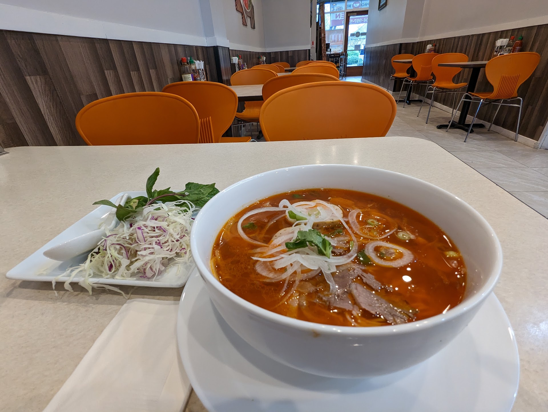 Original answer: We went there at 6pm to order a Bun bo hui. 20 minutes after we ordered they came out and let us know, they are out of the noodle. We can have a replacement noodle instead of the original noodle, we can also wait for another 15 min for the original noodle or we can just leave, there will be no problem. We assumed everything else is ready and told them, they can just do the replacement noodle, however, we do expect a discount. The server agreed. The server went back to the kitchen for another 15min, at which point we started being impatient. please mind that it was by no means busy, there is 2 other table there and are already eating. I went to the bar and ask them where our food is, they told us they are waiting on the broth. I find it hard to believe that for a place that only serve pho, they have no broth, no noodle and took 50 min to make everything. I sat at the bar to see what they are doing. Of course they brought the food out within 5 min. We finished the food, but first of all, the meat in the bun bo hue is not for bun bo hue, it is for regular pho. Secondly, the broth wasn’t even hot. And third of all, the noodle is half raw. When we paid, the server then declared they never agreed on a discount and then got impatient. If you customer is not even impatient to wait 50min for luke warm, half raw noodles. I don’t see what the point of this...