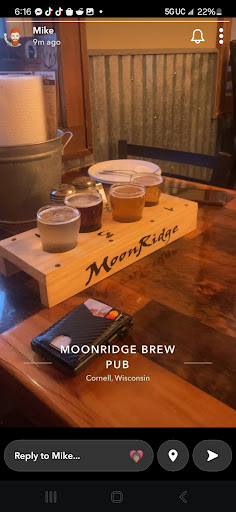 Read moreMy friend and I stopped at MoonRidge today after some outdoor adventuring; we have both been here before but its been a couple of years. We got there shortly after they opened so we were the first ones there and greeted promptly by the bartender. We ordered the Cuban pizza and a couple of beers and sat outside on the patio. The beer is fine, nothing outstanding. When our pizza was ready they brought it out to us. I know this isnât a full-service restaurant but it would have been nice for someone to check on us or even ask us if we needed anything when delivering the pizzaâ we never got any napkins. I love the spent-grain pizza crust but this was probably the most underwhelming pizza Iâve had here. I felt like the toppings were a bit sparse and the pizza itself was barely warm. Iâve had the Reuben pizza here in the past and it had more toppings and was hot! Iâll probably visit MoonRidge again, but Iâm hoping the quality isnât going downhillâ itâs a nice little stop when...
