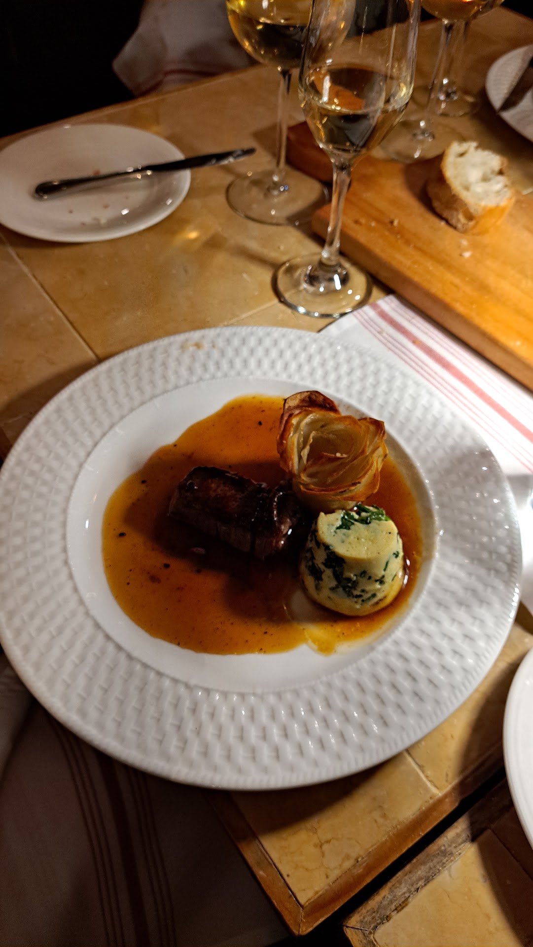 The servings are varied, incredibly tasty, rich, and deeply satisfying. The bread is warm and crusty, but try to go easy because there is A LOT of food coming! The courses will cover all the bases from veggies to fish, and poultry, and a either a beef, lamb, or pork dish. Our meal concluded with not one, but two desserts.