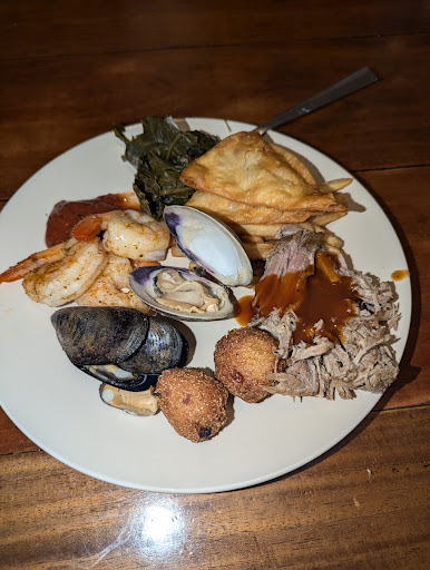 Aside from that the food wasn't too good and we were disappointed in that. I had the crab cakes which claim to be "the best from here to Hattaras" and I'm sorry but....no. I have eaten a lot of crab cakes up and down the OBX and these are actually some of the worst I've had. Just not very flavorful, bland, ick. Please don't claim to be the best if you aren't prepared to back it up. My husband had a seafood platter and it was so hot his mouth was on fire. Please understand that we eat a LOT of spicy food. He's a regular curry eater and we both love New Orleans cuisine, but this platter was too spicy for him and that says a lot lol. Though spicy it was ok - he just couldn't taste much other than the spice. Kind of ironic considering how bland my crab cakes were.