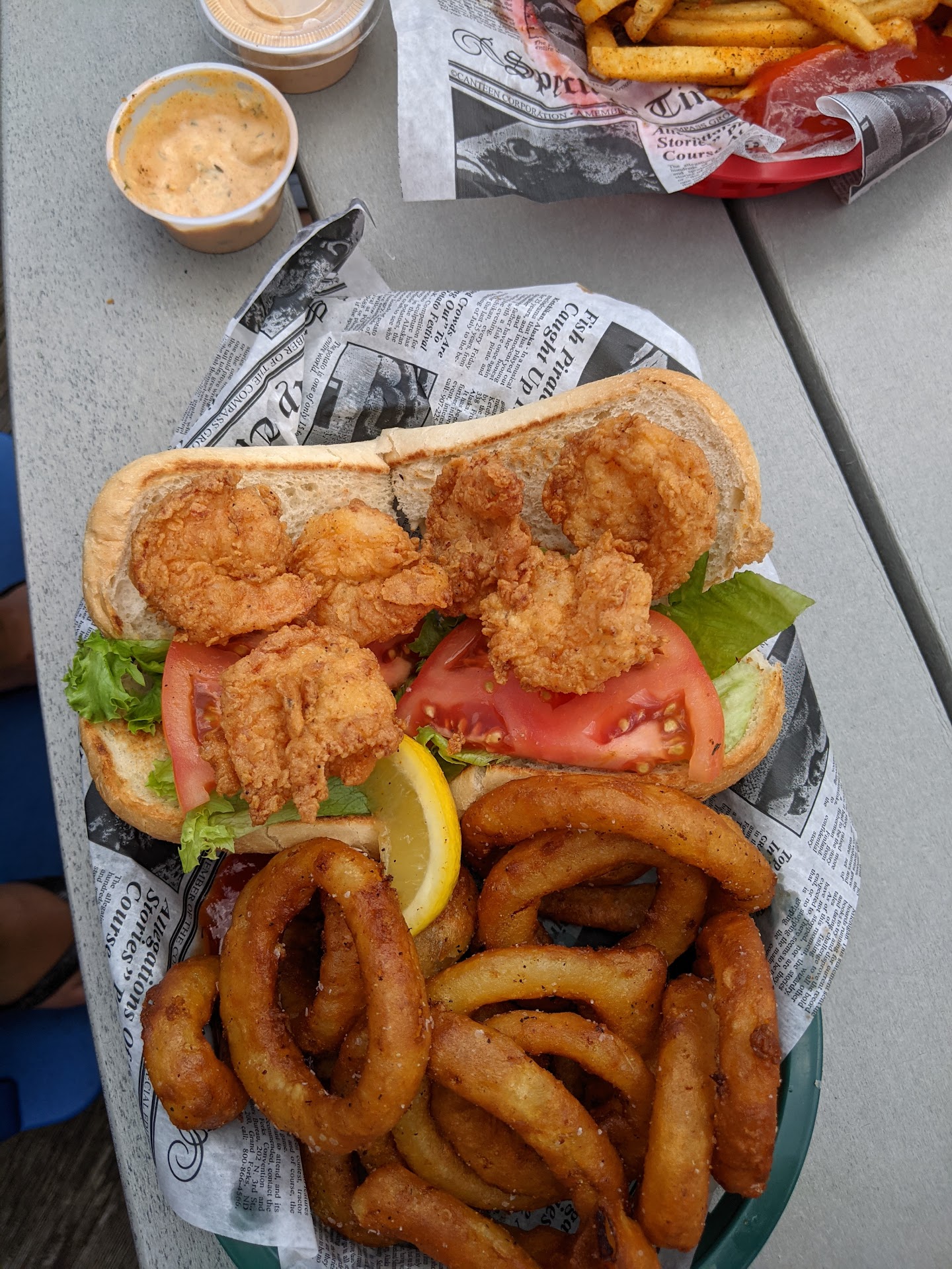 Look, this is less of a restaurant and more like a food stand or food truck. And that's ok. Limited menu, mostly fried food baskets of fried shrimp and other seafood, plus a few burgers, chicken sandwiches. They all come with one side like fries or sweet potato tots, etc. They have sodas, tea, and beer to drink.