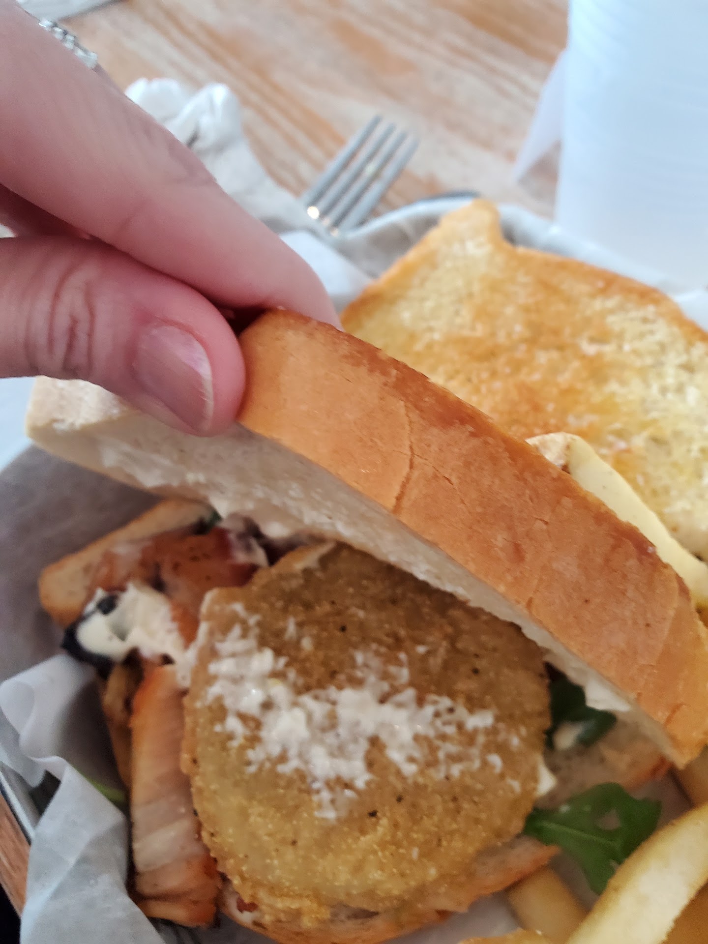 Read moreLovely little local eatery. I know so many go for the novelty of the brews. Which is really neat. Get the id bracelet and you're charged by the ounce. The bracelet activates the taps and tracks your pours. But really the food is so good. We had the bruschetta and fried green tomatoes. I had the OBX OJ to drink. And we got the pork belly Sammie, the catch of the day tacos, kids chicken fingers, and the far east burger. The appetizers were great. Really well done. The far east burger did a great job capturing the flavors of Korean food while still having a good burger. The tacos had tuna the day we went. It was fresh and well done. This is from someone who does not care for sea food. And the portions for the kids meal were plenty even for an adult. It would work for someone who is maybe looking for a more plain and simple dinner. Now the pork belly Sammie was so tasty. The sourdough was lightly toasted, well buttered, but not as much like sourdough as I was expecting. I was expecting more tang in the bread. The aoli was good but I personally would have loved a touch of heat to give the sammie just another layer of complexity. The pork belly was crisp and tasty and the arugula fresh. The fries were simple and excellently done. Servers were attentive and the place clean. The bathroom was very clean. This was an excellent stop on our little weekend OBX trip. I gave it four stars bc it's a very small place and it fills up fast. it's popular! So when all the tables are full it can feel a tad claustrophobic in there. But over all...