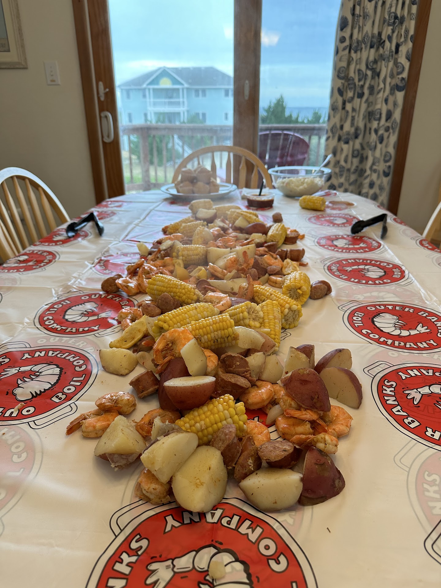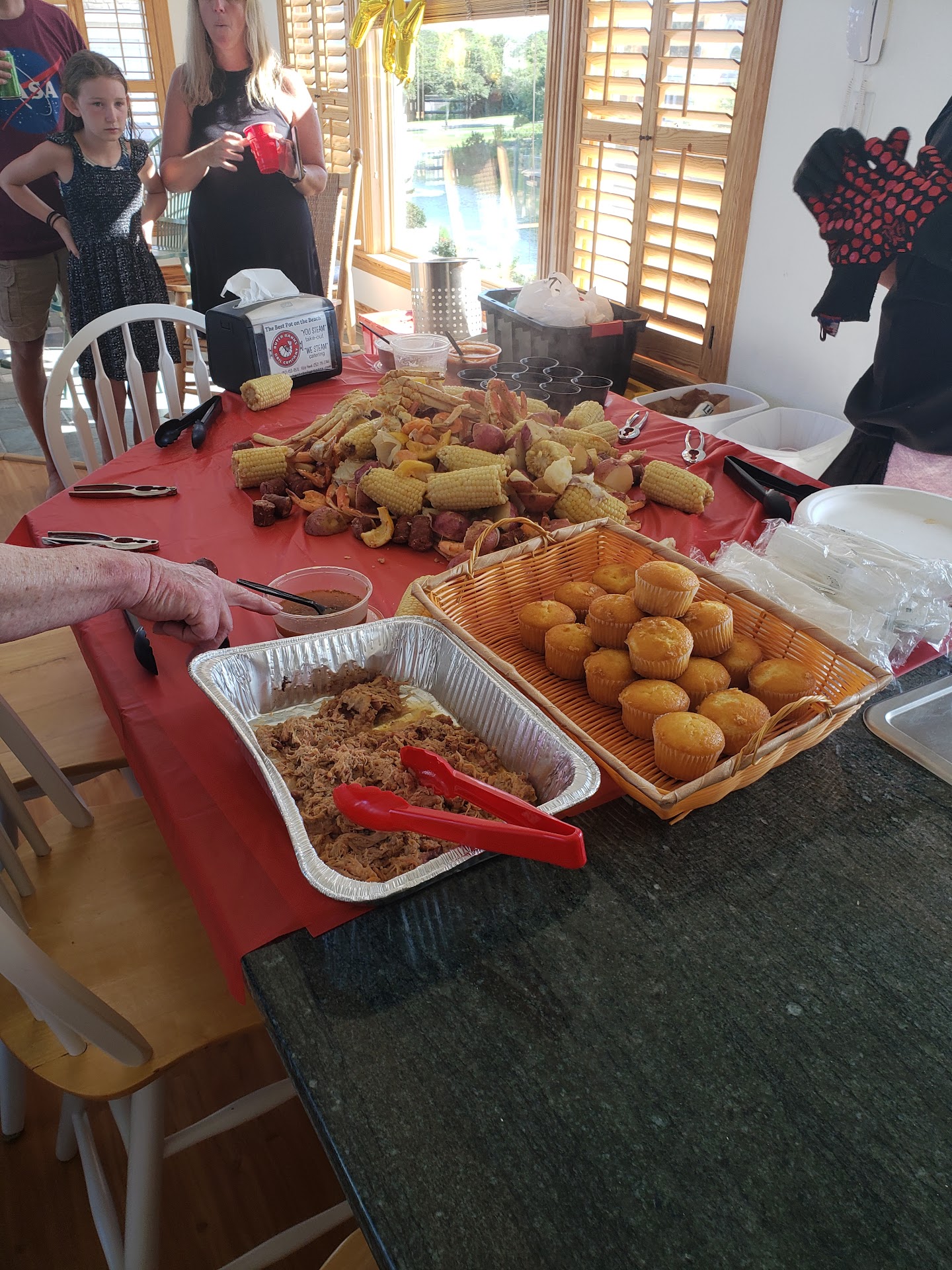 The food : we had potatoes, corn, crab, muscles, clams, shrimp, key lime pie, coleslaw, cornbread. Everything was a hit amongst the entire family. I loved it all too, but was most impressed with the key lime pie. Two weeks prior to visiting obx, I was on a trip down to the Florida Keys and tasted many key lime pies - this one was up there with the best I tried in the keys.