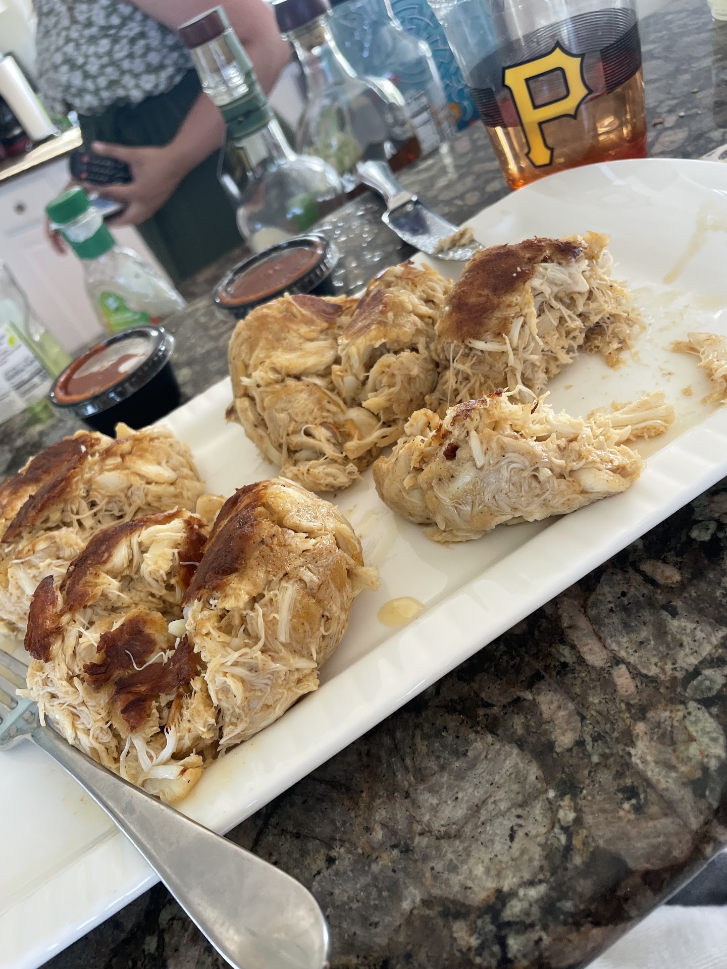 But...the bad. We didn't think the food was as good as it could've been given the prices. The she-crab soup tasted "off" and was strangely lumpy, the crabcakes were rather dry (being from Maryland, we do love our crabcakes), the fried oysters were overly greasy, and the mahi mahi was just okay. About the only food items we really enjoyed were the hush puppies - particularly the honey garlic butter that comes with them - the green beans, and the mashed potatoes.