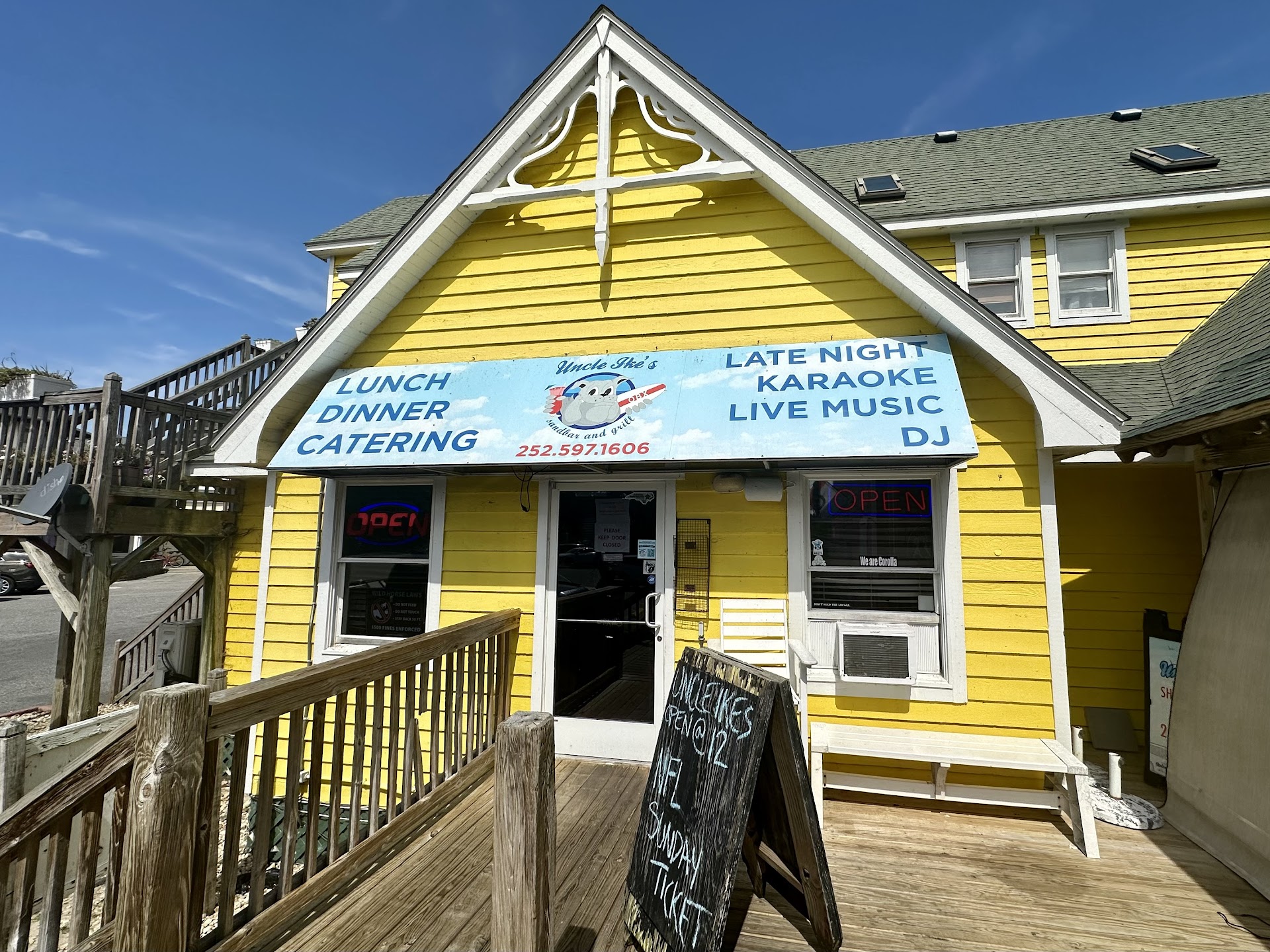We ate at Uncle Ike’s Sandbar and Grill on 9/12/24. It’s located across from the park on the main road in Corolla, NC, in back of shops and other restaurants. Difficult to find because of signage. The place is bigger than it looks because it extends back and outside.