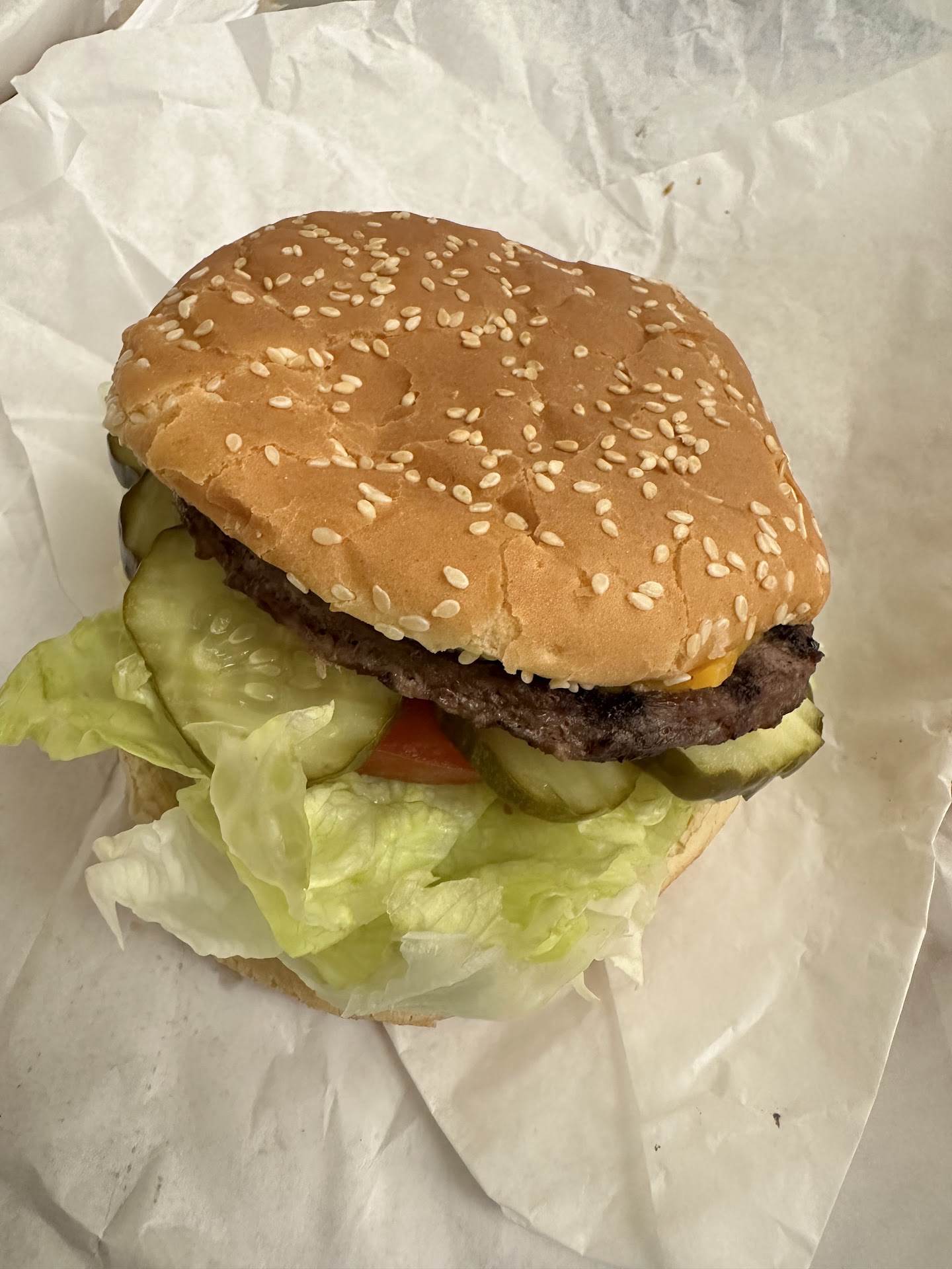 Anyway, I’ve literally been going here everyday for over a week now lol and each time has been great! I get a cheeseburger each time, but also have tried their fries and patty melt and they were all so delicious! Dunno if anyone remembers that diner Cal Oaks that used to be on rimpau & Ontario many years ago but the cheeseburger reminds me a lot of theirs. Just a really good diner style burger that’s big, juicy, and satisfying. It comes with shredded lettuce which I love and I’m not sure if the onion is shredded too or just really thin but I love that it’s small enough where it’s not overpowering. I hate when a burger has a really big slice of onion that takes over all the other flavors of the burger. The patty always tastes fresh and I love that you can see the grill marks and tastes similar to charbroiled. The sesame buns are lightly toasted w/ the perfect amount of condiments on (mayo, and possibly another type - not sure). I love eating this type of burger with ketchup and highly recommend it! Also the patty melt was just as delicious and the fries were lightly crisped and a big portion. The only thing I would suggest be different is the meal for the cheeseburger aka the burger basket is about twice the price of the burger, and I don’t think it’s worth it esp cuz the drink is small. Meals should be a few dollars more. The inside of the place was very clean and pleasant to dine in. I usually go through the drive thru tho and around lunchtime the line can get pretty long but usually it doesn’t take too long to get your food, although it’s not as fast as jack in the box or McDonald’s which to me is a very good thing and I actually prefer it because it means they’re making my meal fresh/to order. Burger Basket is a corona staple/legend and definitely one of my favorite...