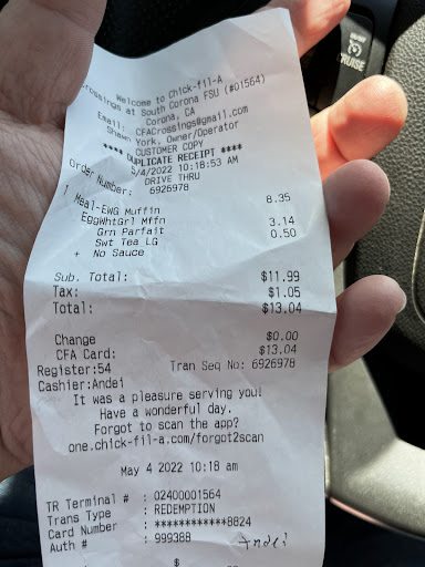 Today is December 21 2024. I’m updating my review from 3 years ago. (Please see below). I ordered a sausage biscuit and an Ice tea. Chick fil a is not what it used to be anymore. The were known for quality of food and service. What I got today was anything but. The biscuit was barely baked. It was almost like a wet dough. The sausage had no taste. The egg was a bit soft almost dripping. My ice tea was so watered down. I don’t mind paying the higher prices they’re now charging. I understand we have a high inflation and the new $20/hour fast food worker pay raise. I do. But when the quality takes a crap, no. I’m even an executive member on the app. I used to spend a lot of money here every month. The service is not the same either. Most of the time it takes a loong time to get the food. What I can’t stand is when they get my order wrong, often. So I’ll be cutting down my chicken-fil-a runs at least 90% if not 100%. Today’s update 2-21-25. Second time in a row that I asked for a “sweet” ice tea and it looks like they’re saving money on sugar. It is unbelievable this cost cutting. Can’t you just make it normal like you used to and raise the freaking price a little if you must. This is so obvious what you’re doing. I don’t know what happened to this location but you guys used to be perfect but something happened about 2 years ago and it’s been going downhill ever since. Please fix it.