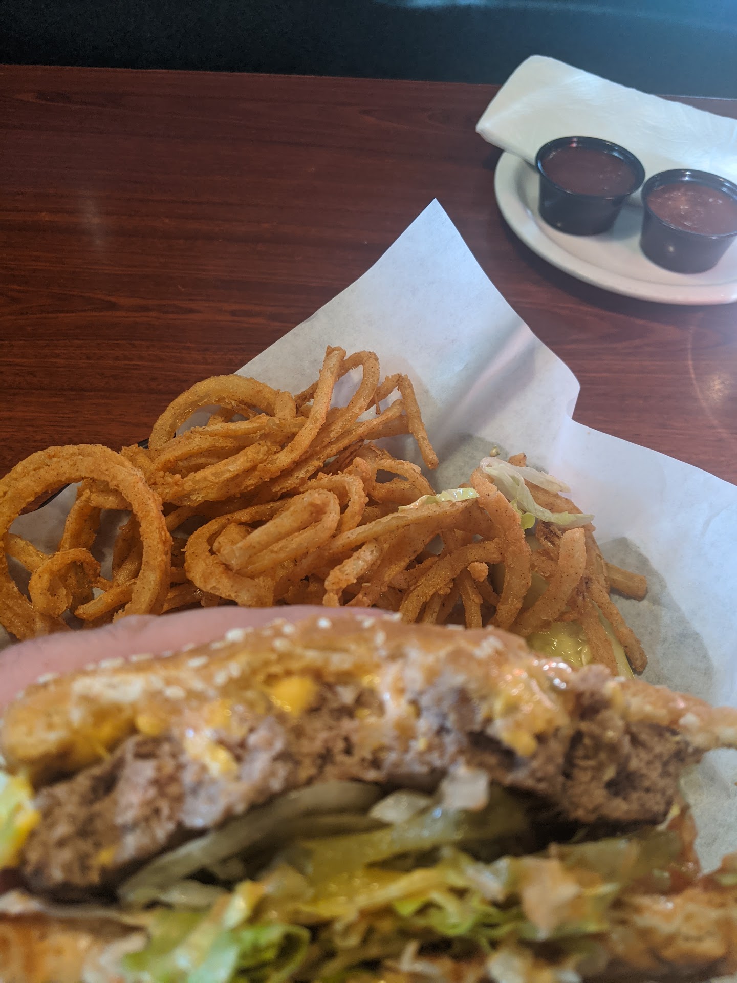 Read moreIf you are looking for good savory food, this is definitely not the place. They took our drink order right away when we got to the table and took them a good 5-10 minutes to get our 2 hot chocolates to us with about only 4-5 other couples in the restaurant. My husband ordered a western burger, I ordered my 1 year old son that loves chicken, grilled chicken strips, and for myself, chicken and a waffle with ice cream on top. When I tell you that the food had no flavor, it's because the food didn't even have salt. My chicken strips weren't even battered, they were literally 2 grilled chickens put probably in the oven or air fryer by themselves with no seasoning AT ALL. My son that loves chicken didn't even want to eat it because again, even his boiled chicken didn't have any seasoning. My husband said his burger was ok but stated that the Carl's Jr burger tastes better. Throughout our whole stay, the waitress only came to check on us once, we had to get up to ask for certain things about 3 times. My son did not get his drink, and not to mention, the price was pretty high especially for what we got. We are blessed to be able to eat out once in a while and take a break from cooking, but man do I regret going to this place. Good...