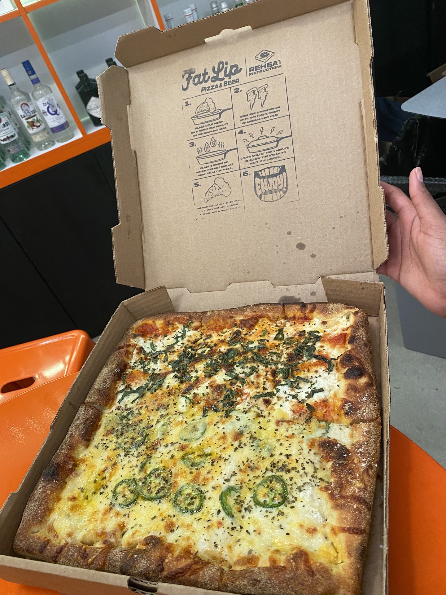 I ordered a 12â square, half jalapeño popper, half vodka - both recommended by regulars. Ordering was quick and easy. Within moments, my pizza was hand delivered to me at a nearby shop by a very friendly employee. The aromatic smell alone didnât prepare me for this beauty. The jalapeño popper pizza is my favorite pizza ever! Spicy, but tolerable. Cheesy, but not overbearing. And the sauce is phenomenal! Then the vodka pizza is equally as tasty. Their sauce is so flavorful without taking away from the classic recipe. Basil is fresh and cheese is so so good all across the board! After learning the dough is aged for days, this helped me understand how the dough is thick without being heavy. I am able to eat several slices without feeling like itâs too much.