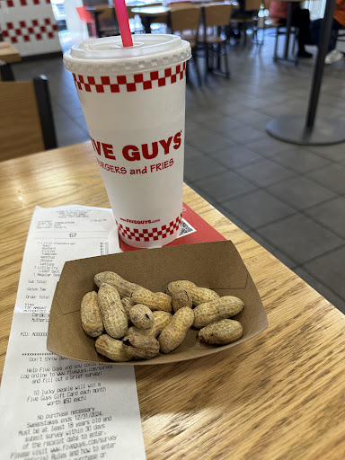 It’s Nice to be greeted by employees. The girl at grill said hi welcome, the greeter should have said welcome to five guys burger ? But anyways… she then asked if I was going to order single or double as I was looking at the menu … then the cashier approached to take my order semi friendly however very nice compared to other restaurants, my cashier should have sensed my interest in possibly a shake since she suggested if I wanted fries I said yes she offered drink I said yes but she should have pushed the shake as I was considering looking at that side on my menu but was rushed anyways I guess I didn’t need the extra calories ☹️ 🤔 my suggestions she should have offered peanuts as I forgot they offered as I walked away or thanked me for choosing five guys burger as she gave me my receipt and told me my number ? Do that way feel appreciated as a customer and make me want to come back because they appreciate me eating there ? Just saying