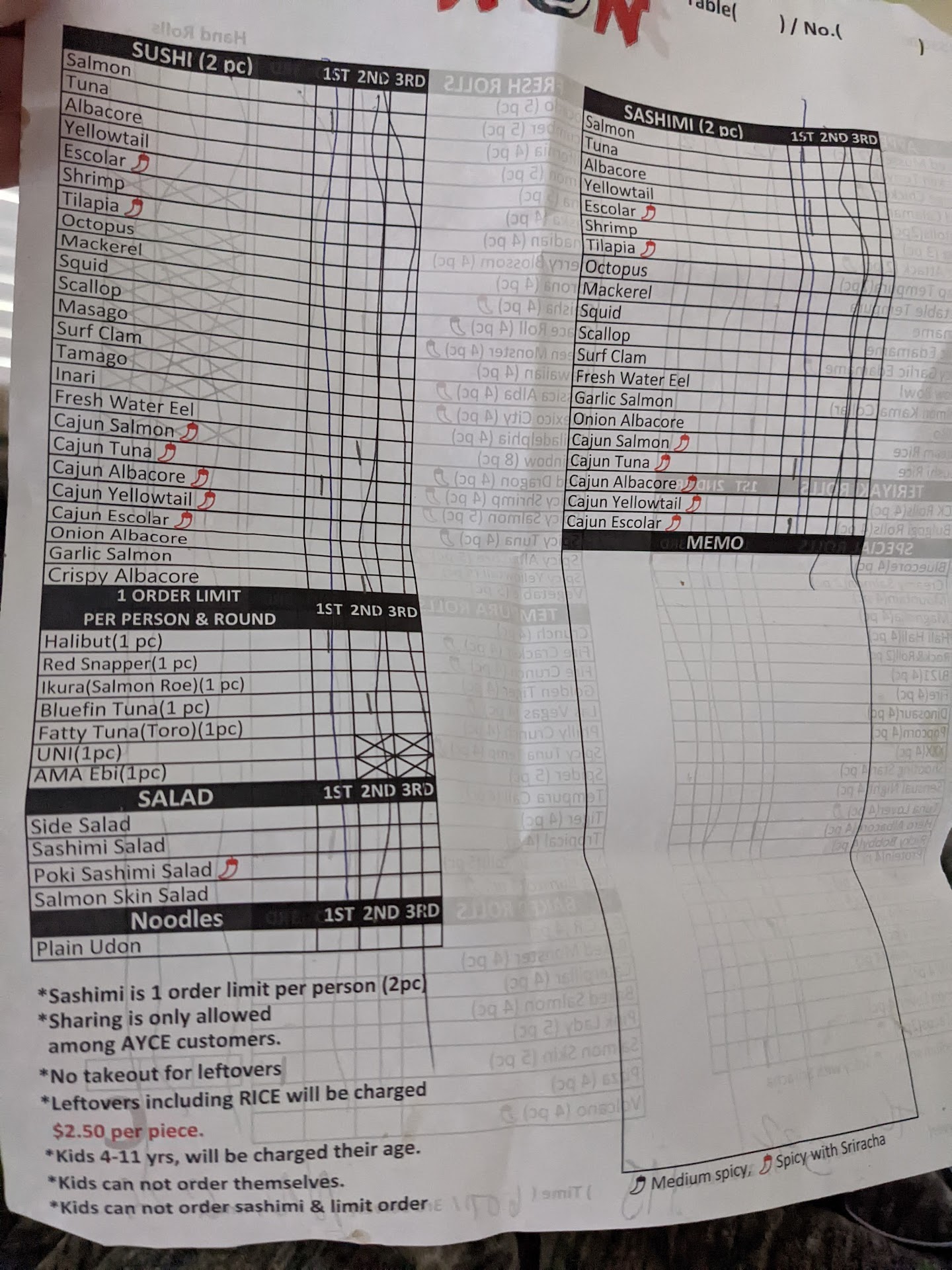 We've have visited many AYCE places,so we understand only to order what we can eat to avoid the extra cost.
