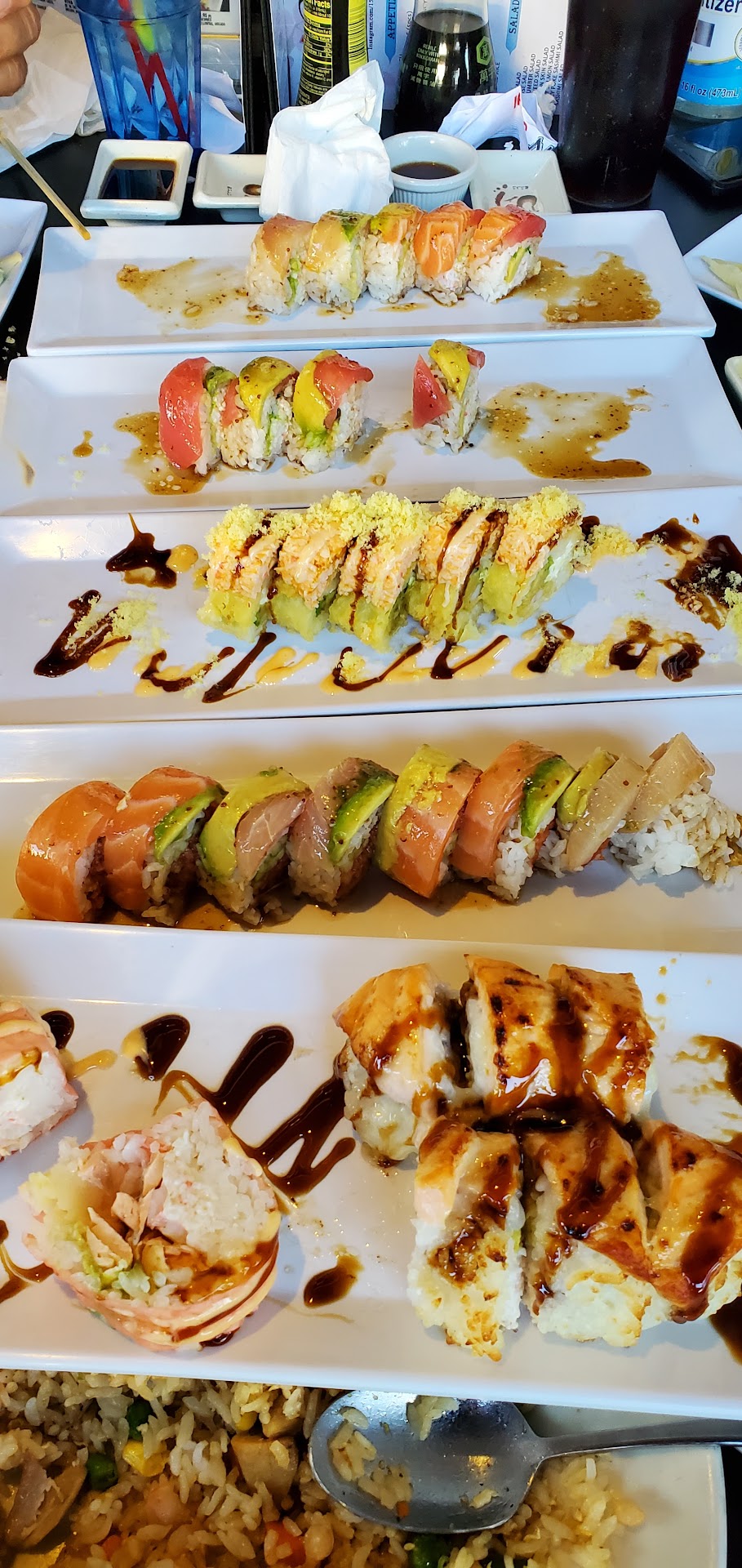 ย ย ย Read moreI honestly don't know what all the fuss is about, this place is probably one of the most functional Sushi Joints during this covid era, that still offers a variety of items with all you can eat. Me and my partner ordered the all you can eat B which comes with just about everything sushi. The sashimi are very well cut and I absolutely adore the tempura sushi roles. Some of the appetizers were a bit iffy the first round like the fried calamari being a bit dry. However the second round of calamari was redeemable with a crispy hot crunchy texture to em. The appearance of each dish brought to the table were well crafted. I do admire how no matter what you ask for they ensure no different rolls are thrown together on one plate. The total between me and my partner was a lil over half a Benjamin and I feel we both had more than our money's worth. I reccomend going when it's early or a lil later to avoid flies, however they do have these high powered fans blowing which seem to be efficient enough if ur closer to the fan. Favorite items (Tempora Tiger, Baked salmon roll, salmon sashimi, albacore sashimi, Volcano roll, Tropical roll, and lastly...