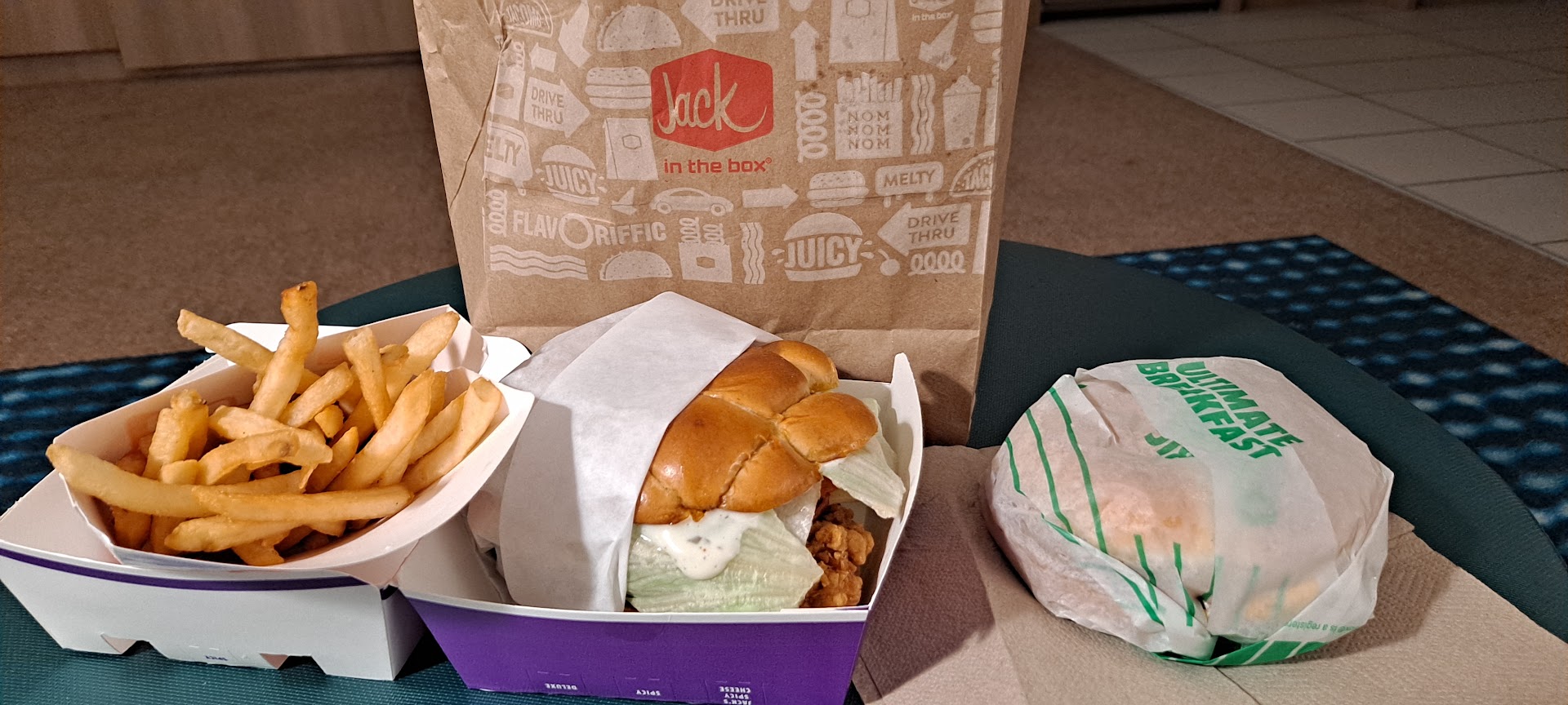 Read moreWhat can I say? It's Jack in the box on Bedford Canyon. This location has ALWAYS been good to me whether I'm paying with my EBT card, credit card or the all American paper money cash. They have never been rude or nasty in any way shape or form. I went there yesterday and ordered what I did. Sat at a table that happens to be the only one in the restaurant that has an electrical outlet by it. So I charged my phone while I ate. Unfortunately I dozed off well I was waiting for my phone to charge. 4 + hours later one of the associates came over to me and asked if I was done. I looked around my table and said yes. After throwing out my trash and collecting my things I headed out. Like I said this Jack in the box location has always been good to me. Far better than the location on 6th Street and Smith Street and still better than the location on Ontario Ave. and...