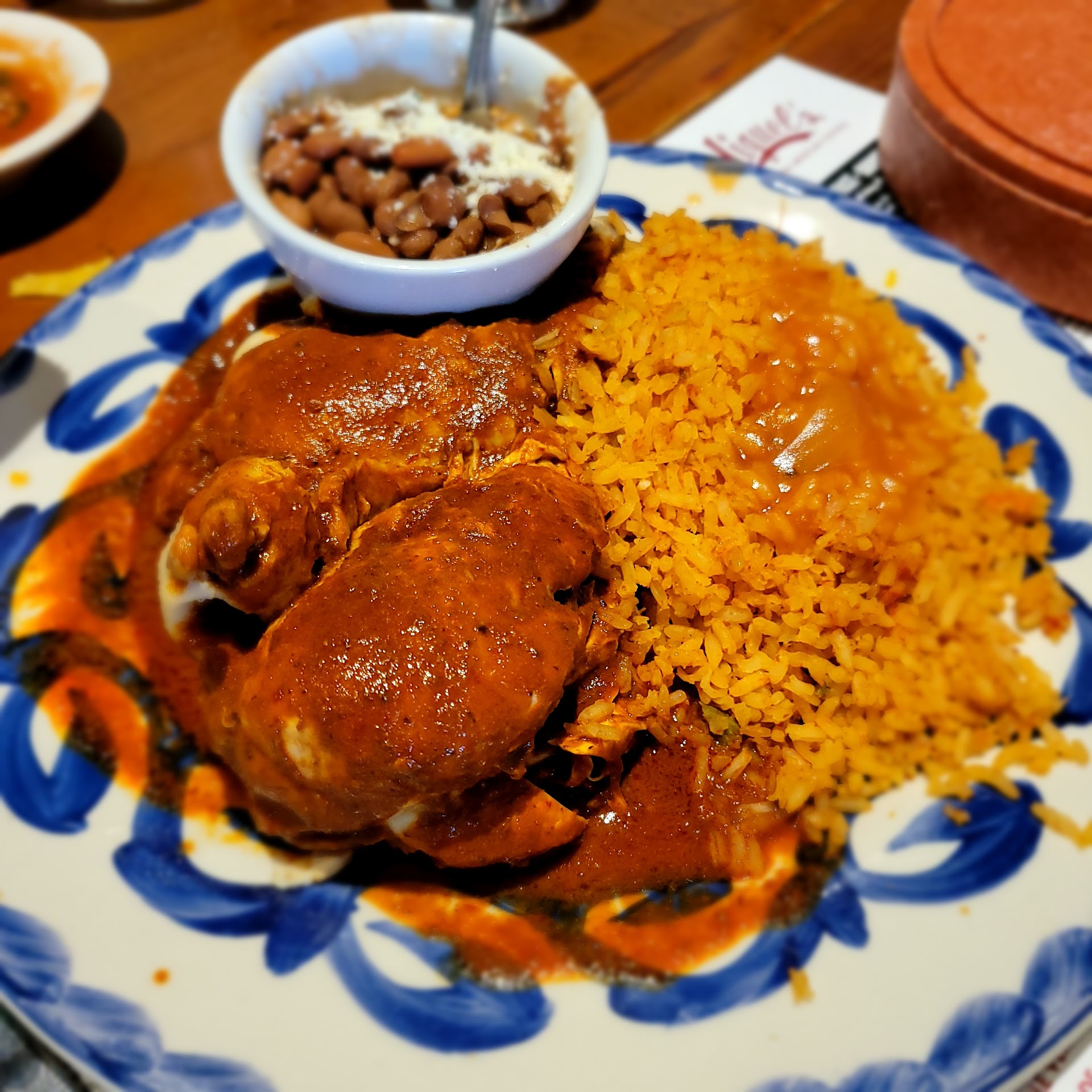 Read moreThe service was excellent. The ambiance was great. Optically, you'll think you're in for a great meal. The beans were thin and seemed like canned beans almost blended(??). The rice lacted texture. There were not the typical bits of onion tamatoe, etc. However, I had a great taste because of some spice that I couldn't quite figure out. The tortillas were a big BIG disappointment. I saw the tortilla machine, and I got excited for some awesome tortillas. However, they were cooked too quickly at a too high temperature, so you had dark spots , but the rest was a bit raw and transparent. The enchilada sauce was only adequate. The chips were way thin, and i think maybe out of a bag. The salsa was top-noch. Excellent flavor (I wonder what jar they got that out of). The guacamole. Was just smashed avocado with nothing! No lemon lime onion cilantro, nothing!! The service was excellent! The food was served fast hot and with a great presentation. The flan.... I have no words. They need to go to other restaurants and see how they make flan. When you arrive and sit down and see the service, you prepare yourself for a great mexican food experience. Then, after you get your plate, you feel disappointed. It's a shame because all they need is to fix their food, and they would have...