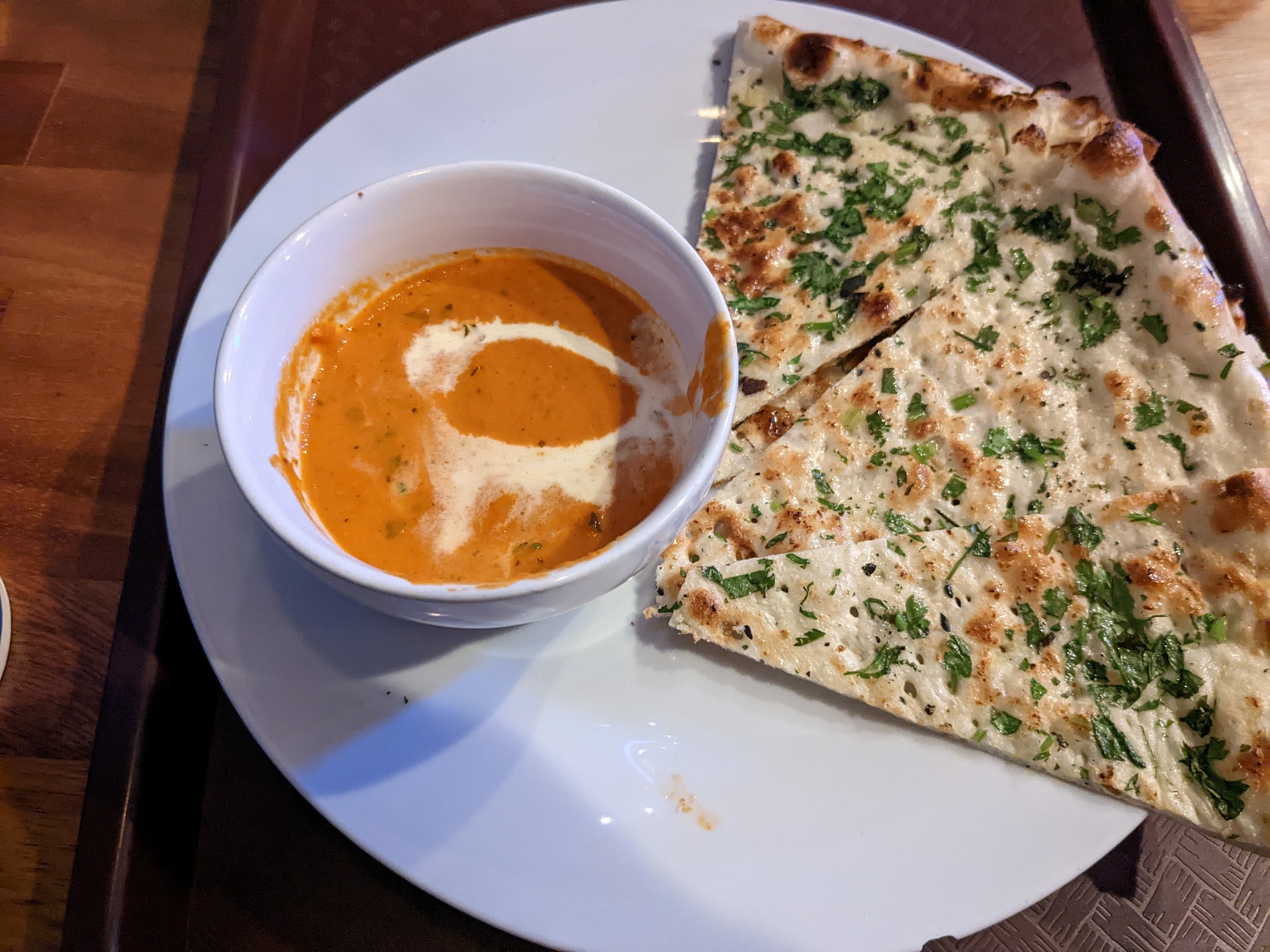 I got the palak paneer dinner and it was so smooth and just on the edge of salty, which balanced out with the rice and garlic naan.