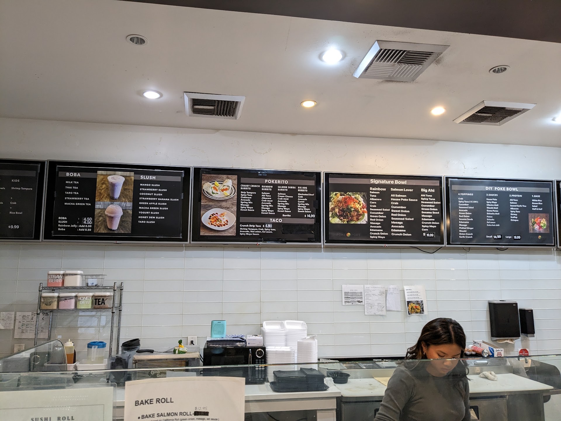 Read moreEdit** 1 hour after eating from here I have started throwing up. Never coming here again. Really disappointed with this place. Husband and I ordered a burrito that was supposed to have spicy tuna in it. They did not include it. We also ordered a shrimp tempura roll. The shrimp tempura seemed cold and soggy. Not fresh at all. We also ordered Boba. The only decent one was milk tea. Anything else they do not know how to make the milk teas taste good at all. You're better off going a couple doors down at Ding Tea (amazing milk tea/boba). Honestly the first red flags about this place was walking in there's no AC working. But you're serving raw items? And the bathroom looked and smelled disgusting. I'm concerned about the overall quality about...