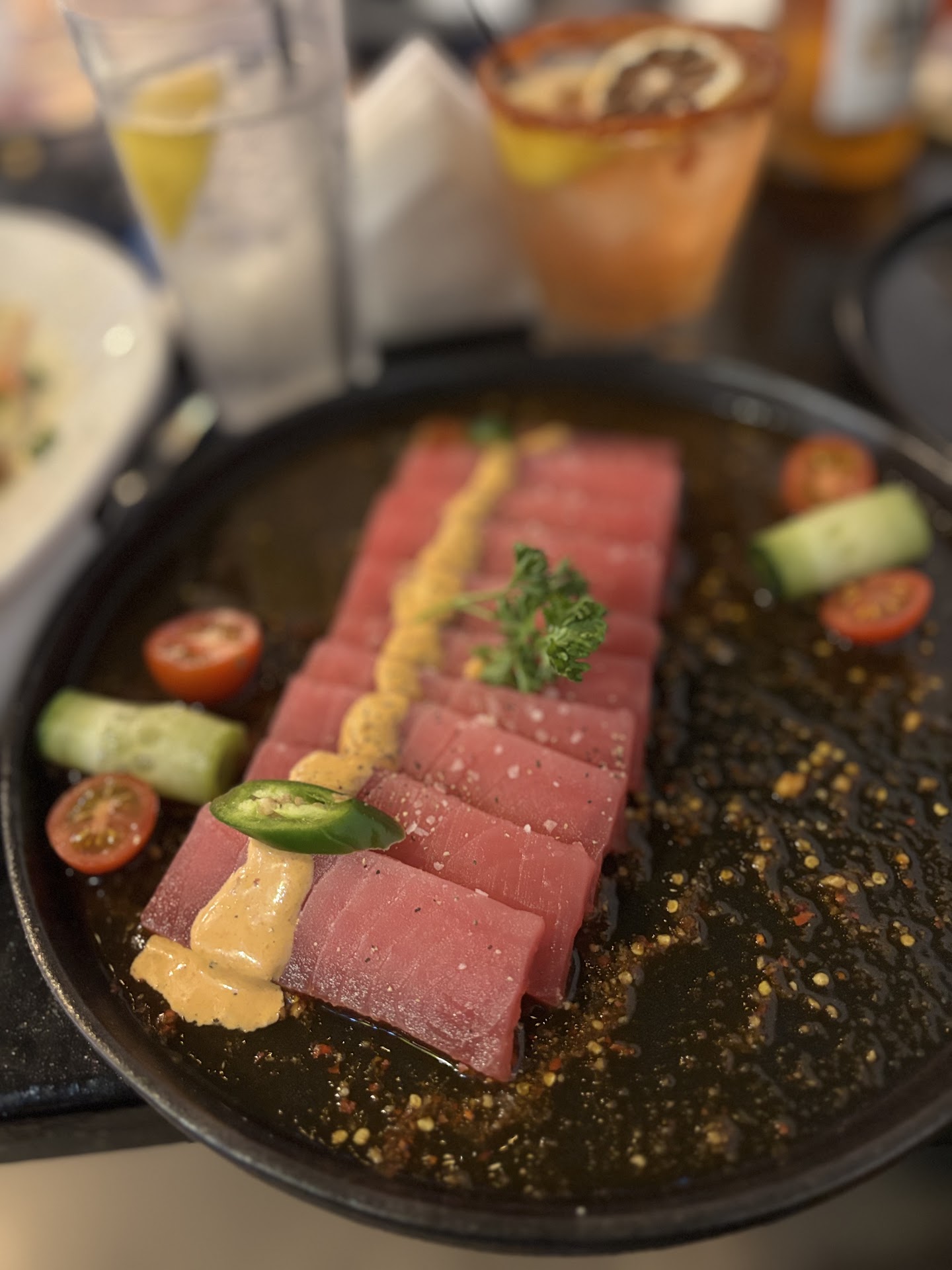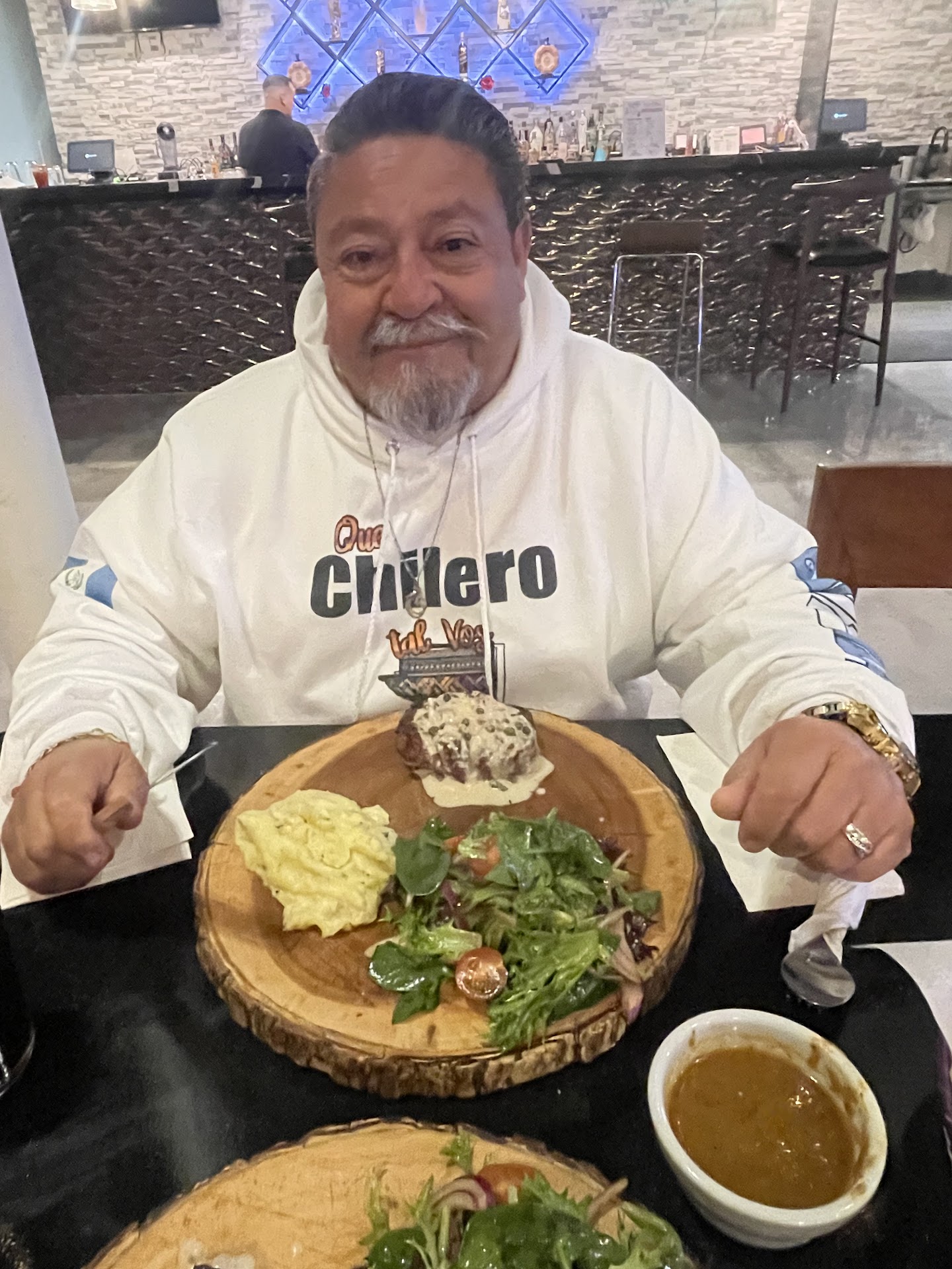 The food was great. I had a taco gobernador, and shrimp aguachile both tasty and delicious ! My guy had the rib eye aguachile which he gave 5/5 !!
