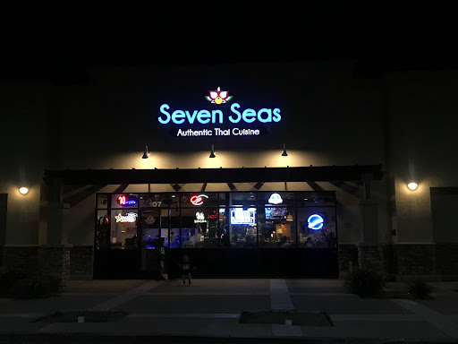 We are moving into the area soon from Irvine and as always were searching for some places to eat especially Thai food restaurants since my wife and I love Thai food . As always we went on Yelp to look for places with high rating but believe me high rating on Yelp does not guarantee t you will like the food especially Thai food since almost all Thai restaurants cater to local flavors and it is very hard to find the place that serves authentic , fresh and tasty Thai food . Quick tip when you look for Thai food just check their pictures and if you know how the real Thai food looks do not hesitate trying it . Seven Seas Thai Restaurant is not located very close to our new house but it has high rating with some nice looking pictures so we decided to try it out when we were around the area . First time we ordered Tom Yum Koong , Chicken Larb , Thai BBQ chicken , their seafood salad , sticky rice with thai teas . Yes I know it is a lot of food for 2 but we were starving . The best part is that you can order a Roti dessert which is very common dessert in Thailand in street markets . Tom Yum koong tasted more for local customers it was not tasting authentic but the shrimps were large and fresh , chicken larb is the best all of and till this time every time we are ordering it . Also their seafood salad and house tom yum noodle soup is good . Overall me and my wife like this restaurant and will be back mot only the service is great always smiling servers and always going extra step to make you happy but also the prices are very acceptable comparing to Irvine restaurants you can get everything almost half...