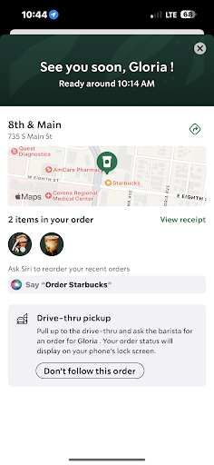 Ok 👍 my feLLow friends and neighbors 🙂 i never go through the drive 🚗 through 1st of aLL. My wife spent the week 🏥 in the ER/HospitaL and she was hurtin' for certain! So, i went through the drive 🚗 through. Eva, who was Our young Lady that heLped us; did more than just heLp us out!!! After being tired, wiped out and just wanting to go home 🏡 --Eva made sure that everything we ordered, the food was "fresh", nice & hot and heLped us decide on a few of the items! She didn't rush us & was very kind, decent, patient and very respectfuL. So, off we went-- home 🏡 with an order of Egg White's & Roasted Red Pepper Egg Bites, a Sausage/ Cheddar & Egg Sandwich, 2 Fancy, very tasty & fresh BLueberry Muffins. To drink, we ordered the Strawberry Acai Lemonade Refresher Beverages. This fairLy "new" Starbucks is Located strategicaLLy in a pLace, where you can see 👀 it from the hospitaL 🏥 as you are Looking out the window across the street. Nice pLace...5☆☆☆☆☆ CLean 5☆, and Eva gets a 5☆☆☆☆☆ from my wife & i. i have fun with my Letters in the aLphabet as you can weLL see by now, but it's aLL good just the same. 😊 @ 70 yrs. young! Have a good day 🌞everyone, enjoy the food & beverages here 😋 and pLease most of aLL & very important--don't forget to "Tip" your waitress/waiter!!! cya...😎michaeL😎 ♥️🤍💙 ✌️🎵🎶🤘