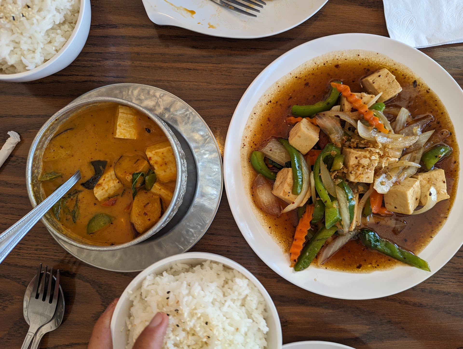 The rice dish was fresh off the stove and very delicious! The flavors of the pork and curry took it over the edge in tastiness. We both enjoyed our meal and had enough to box up to take home leftovers.