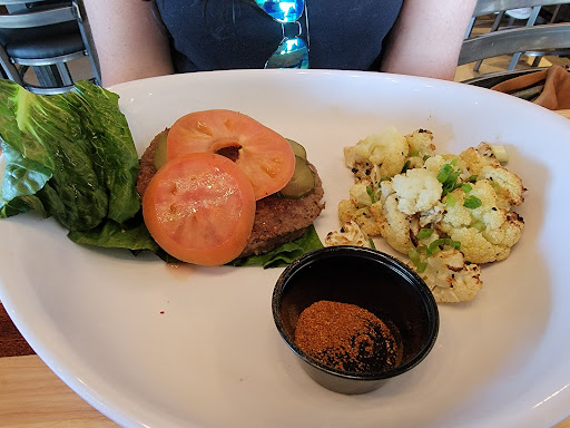 The Bad: Pretty much everything else. Family of 3 ordering Cod Tacos, Impossible Burger with lettuce wrap, and a Crispy Chicken Sandwich. My meal came out 20 mins prior to the other two. No utensils or napkins provided which I had to ask. The Impossible Burger was super sad with roasted cauliflower for $15.....it was absolutely pathetic. Service wasn't the best. The tip left was for the bartender..... Not from this area and if I was, I would only come back for beer.