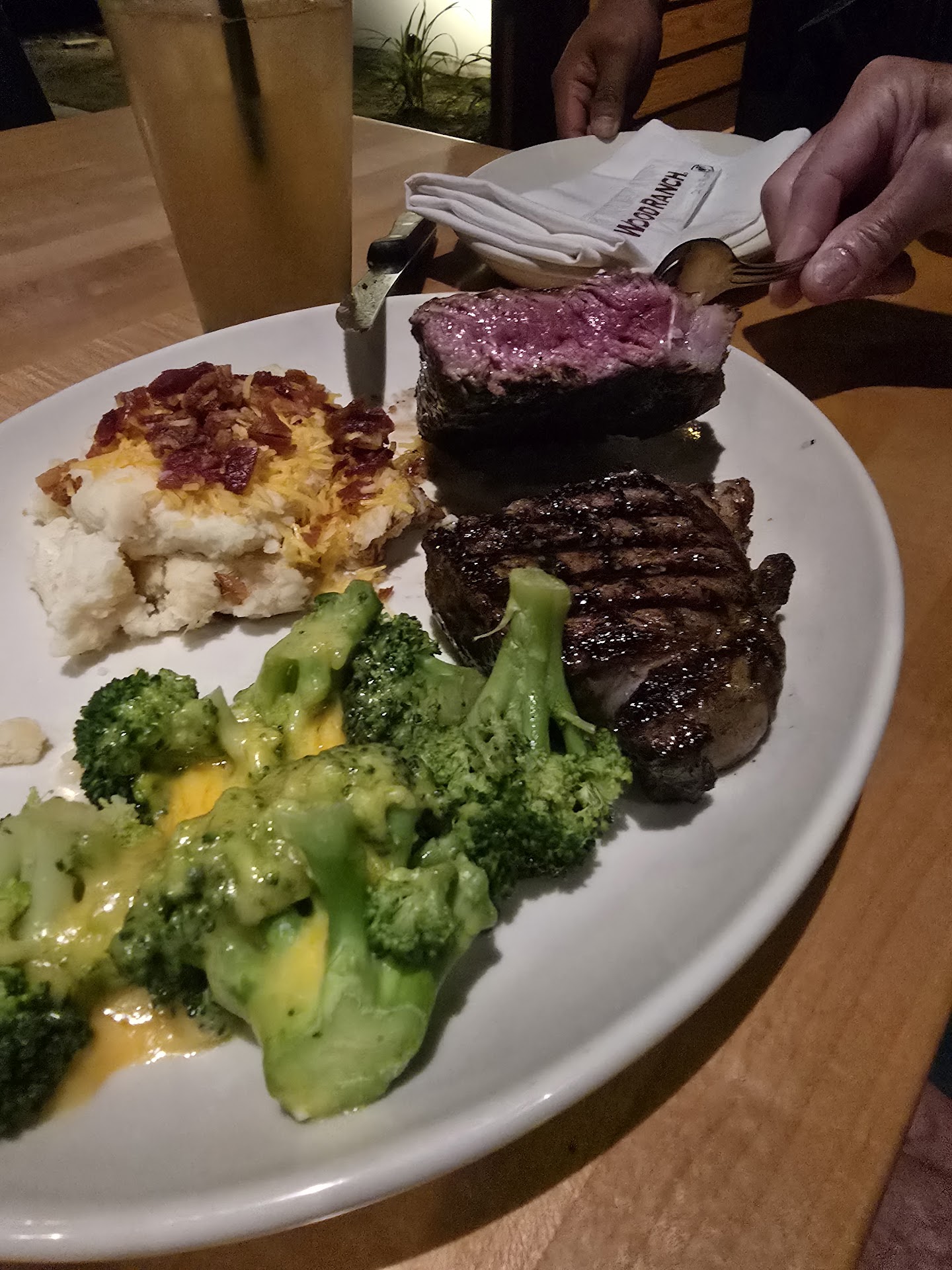 Read moreFirst, the food was excellent and our waiter was excellent. That's where it ends. On January 27th we made a reservation for February 10th for a group of 13 people. It was my sister-in-law's 60th birthday. We checked in about 30 minutes early and they said our table was being set up. They then texted us to tell us our table was ready. When they took us to the table, some other guy we didn't know was sitting there. We told the hostess and she just walked away. When more of our party went to the podium after receiving the text that the table was ready, they were directed to the same table where more strangers were now sitting. Logic would suggest that you apologize to the people you errantly sat there and ask them to wait their turn. That table, by the way, didn't even accommodate their entire party. But no. The hostess said the manager would have to handle the situation and he didn't even appear until 10 or 15 minutes later. He refused to move the other party. So, we had to wait another 15 or 20 minutes to be sat in the outside patio. By the way, their patio is not enclosed and it was 54 degrees and the wind was blowing. If we had a Plan B, we would have left immediately, but it wasn't feasible. So in the cold we sat, outside, with my 93-year-old dad (bundled up, sitting by the outdoor fireplace), family that drove in from Arizona just for the occasion, and the birthday girl who just lost her father and just had a double mastectomy due to cancer. But of course the manager didn't know all of that, and he wasn't remotely interested in fixing his staff's mistake. His solution was to give us some free appetizers. I'll never go back to Wood Ranch again. This was my second time. The first time (a different location), we left after waiting at our table for 35 minutes without being approached. That time, the manager followed us out the door offering us free dessert. How about not offering free food, and instead training you managers and staff how to handle situations and correct their mistakes? But, again, the food was excellent and our waiter was wonderful. But that's not enough to make me or anyone else in our group...