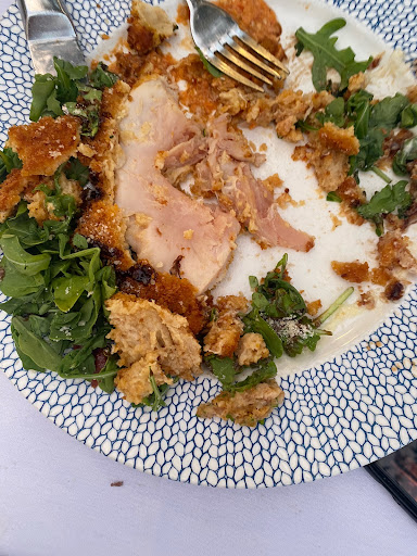 Unfortunately that’s where the good experience stopped. Our entrees arrived and after the first few bites of the chicken Milanese my wife says “this tastes weird” “does this look cooked all the way to you”