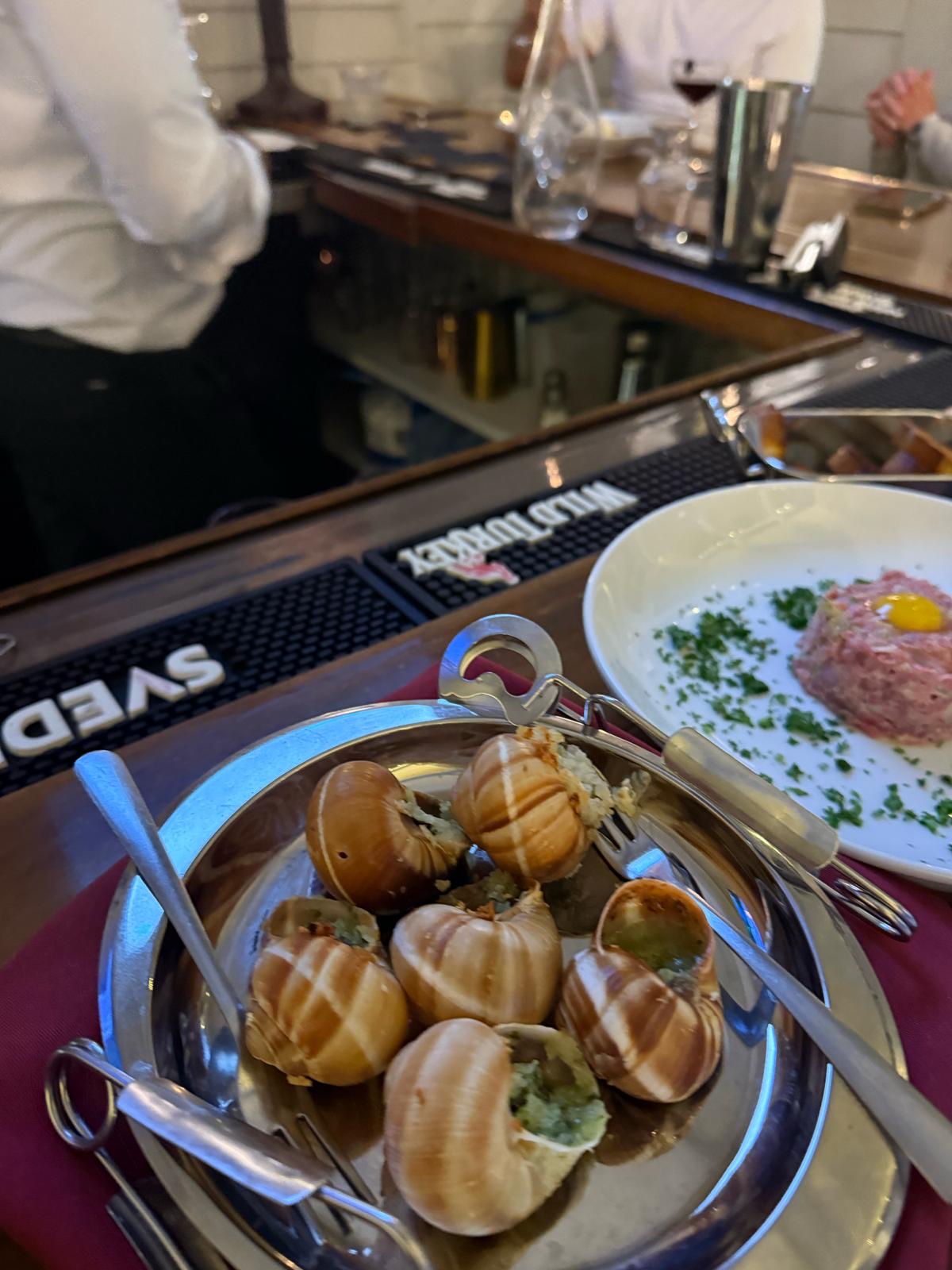 Our companion had the onion soup which was mediocre with a small amount of cheese on it. I had a beet salad which was fine but nothing special like previously. And my husband had the escargot which is a standard for him. The escargot was not fresh, it likely came out of a can but it turned out to be OK.