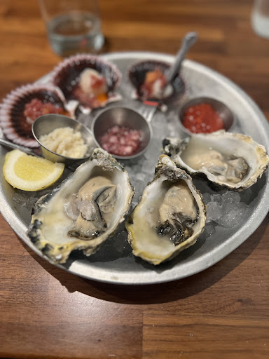The food was the bomb. I had oysters, scallops, crab toast and grilled prawns. All delicious. The oysters were meaty and juicy. The scallops were a bit small but had a fresh flavor and were meaty. The crab toast was amazing. I make it myself at home but this was the best I had. Idk what bread they use for the toast but it’s the perfect vessel and the decadent crab. It was very filling. Lastly the prawns were huge and delicious. I love love loved the couscous and yogurt that accompanied the char of the grilled shrimp. Perfect contrast of flavors.