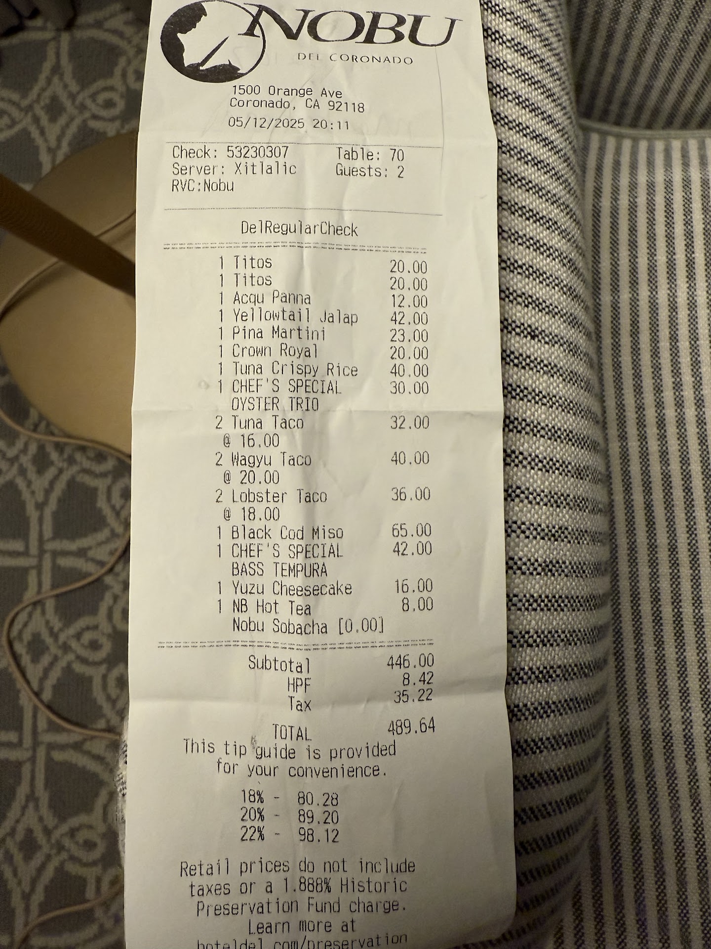 Read moreTwo things first; I'm a 20 year service industry vet currently the Beverage manger at a 5 star steakhouse in Boston. Second.. the service here was fantastic and the food tasted great. That being said the prices are beyond anything acceptable. No prices available online which I'm feeling is because the Nobu in San Diego, 15 minutes away, is 20-30% cheaper across the board. As a beverage manager i know what every thing costs. $280 for a bottle of Veuve yellow label is borderline insulting, that bottle costs the restaurant $38. Every single wine on the (very limited) list was over priced. $1200 for a bottle of Dom Perignon that costs the restaurant just over $200. Insulting. The same with the food. Their signature Yellowtail Jalapeno in San Diego is $36, at Del Coronado it's $48. Black Miso Cod in San Diego is $48, Del Coronado it's $68. On a personal note, as a manager at a fine dining restaurant, I dress in a full suit and tie every night, without exception. The manager here was wearing white Lacoste sneakers, slacks, unbuttoned shirt.. I'm being petty but that kind of thing bothers me. Dress the part. I also check in on every single table, every night. No manager touched our table the whole night. I'll reiterate: our server was great and support service was on point. Dishes tasted great. I will...