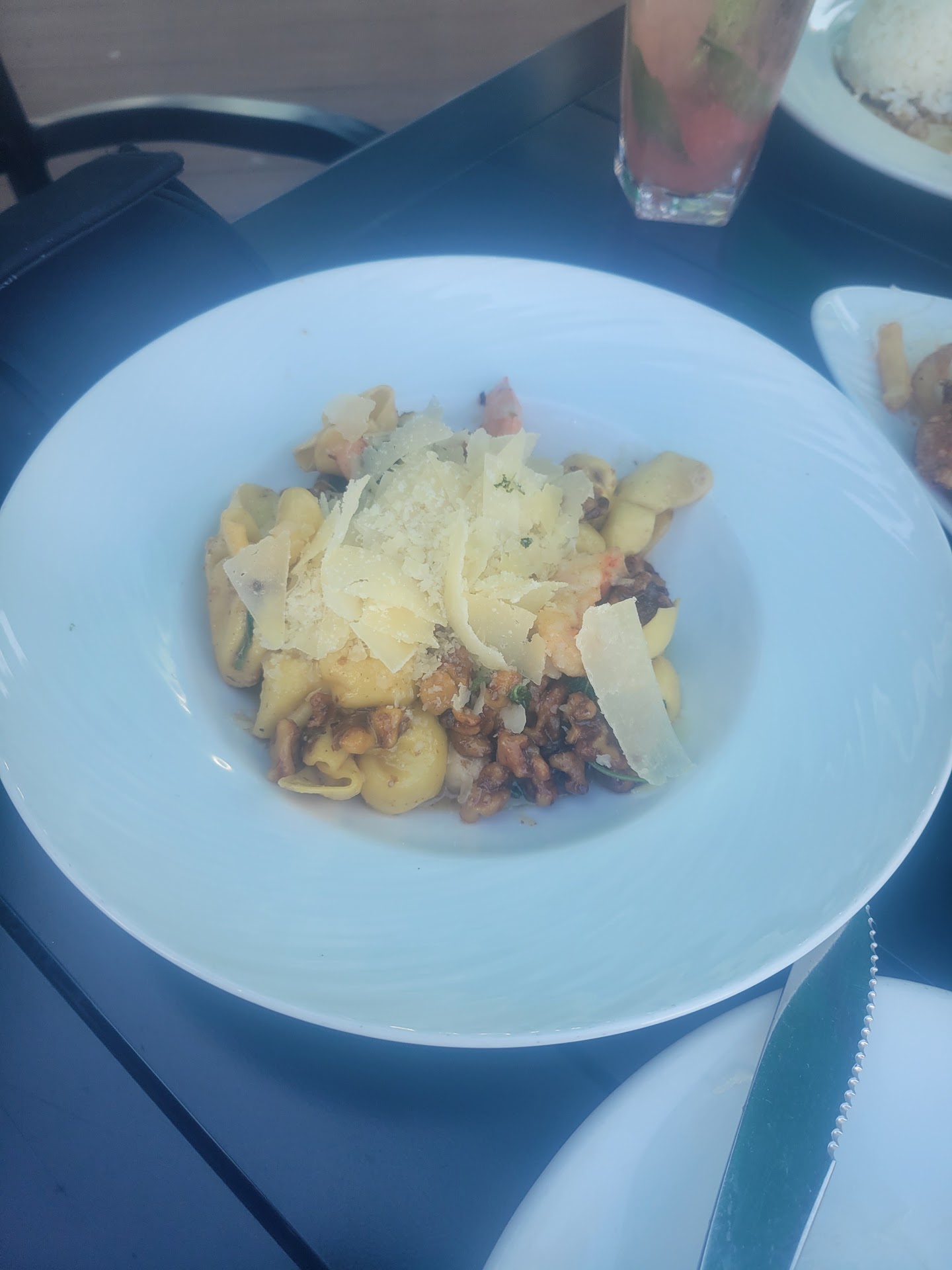 Pretty disappointed, after waiting for a table, when 95% of tables were empty. Hostess said 15 to 20 minutes for patio, at 4PM Sunday. We said fine and sat down in lobby. After 20, checked with the hostess who asked what name we checked in under. I said we just talked to you and never checked in on your tablet... so this time we gave name and cell number, and I asked if we could wait on the patio for a text. So we proceeded to have a couple rounds of drinks on the patio, after an hour with no text (and no service), I flagged down a man who was moving furniture around. He may have been a manager, as he got on his radio and got us inside quickly, which was great, as it was getting cold and Debi needed a heater or get inside. Once inside, it seemed like they were not staffed for having customers this early. Only 4 or 5 tables inside occupied, but one super busy waitress (Lorilee or Loretta? She was good but swamped). She tried to cover everything, but she really needed help. She was constantly apologizing to tables for slow drinks, slow food, no dinner rolls, no waters, and mistakes on bills. I thought it they were just caught with low staff and a rush on a warm day, but she said they are always busy Sunday. ??? Confused... Why have a have a full lobby waiting, and empty restaurant and patio? Other confusing things; Where's the entrance to the patio? Lol, we like so many couples walked the board walk infront by the water, only to double back lol. A sign would be nice, or something on the patio with some information. We asked customers on the deck and they said they're just sat down and were self-serving from the bar (no patio service). We said we wanted food, so they recommended we walk around to the parking lot side and go inside. Other area for improvement IMHO, there's a restaurant information station(?) outside, but only a teaser partial menu, with no prices. Note says to go inside for full menu... Really, come on... OK, I like the patio, let's go see if we can get mugged. I suggest, if you can, please add a full menu and an arrow to the entrance at this station. We saw others wandering around lost too once we were seated. PS, Even the full menu didn't have prices for beer. It was 8.22 I think for a bottle of Modelo, no draft. Not bad, paying for the view. Same as the $51 for a pasta dish. Prices are little higher than they should be, but it is a nice view. The keylime pie was good too. Anyway, this is way too long, and I hate writing reviews, lazy, but I think this place could be so much more. If you don't want 4PM visits, put up a sign that there's no food service or something, or no patio service. I would rather you have the patio served on the warm afternoons, with maybe a limited menu or a Happy Hour. There were so many people nearby you may be able to attract. Wouldn't take much, likely an entrance you can find and a little patio music would fill you up. Other small area for improvement is the ceiling tiles could be on the list to review/replace. They were stained and broken, and not up to the level of the rest of the building's interior. Again, just seemed like something was off, too many barriers to get seated and spending money in my opinion. Such a great location to mess up capitalizing on. Best wishes for a great summer,