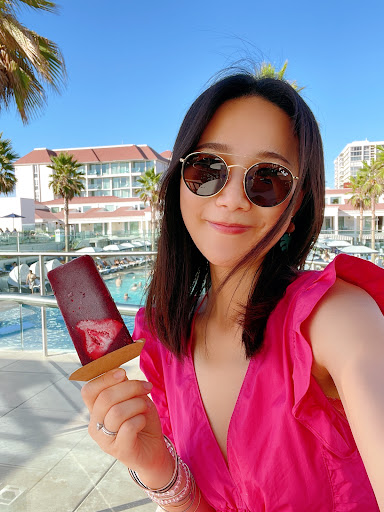 They have popsicles and gelato. You can customize either. The prices aren't exactly shocking for the Del, but I really can't say a popsicle is worth $9 something with tax. I was very glad they had non dairy options. I had the strawberry kiwi popsicle. My kids got two scoops of gelato and a waffle cone each. Somehow a simple beach wall turned into a $50 ice cream run. Wow.