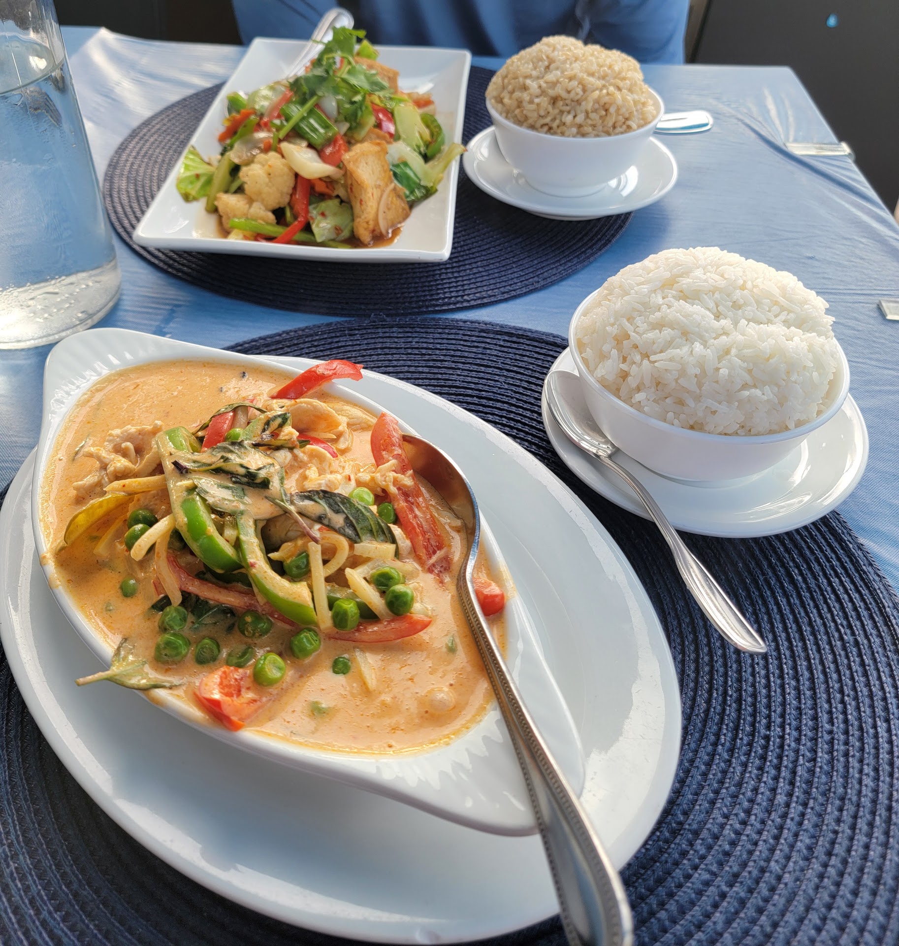 Read moreWe went to this restaurant Saturday Oct 6th for evening meal. We are familiar with Thai cuisine and eagerly anticipated the food. We ordered starters soup was delicious, spring rolls & chicken skewers quite nice. The had main course Penang and red curry for main which again was quite nice. Food we enjoyed though we felt slightly expensive. Not much choice of side orders on the menu ; only boiled rice offered. Sadly the customer service was lacking as I had to ask several times to be served we sat alone on the other side of this small establishment and felt left out. When finishing up we weren’t asked if we wanted anything further just came with bill - only to query why I hadn’t tipped !! Maybe our experience is a one off, maybe I it’s because we were from the UK ( not American). We have travelled and dined extensively all over the world and very much look forward to dining out, sadly on this occasion we left after only 40 mins In our experience The food above average ( though could do more choice with sides and rice ) the service /atmosphere well below...