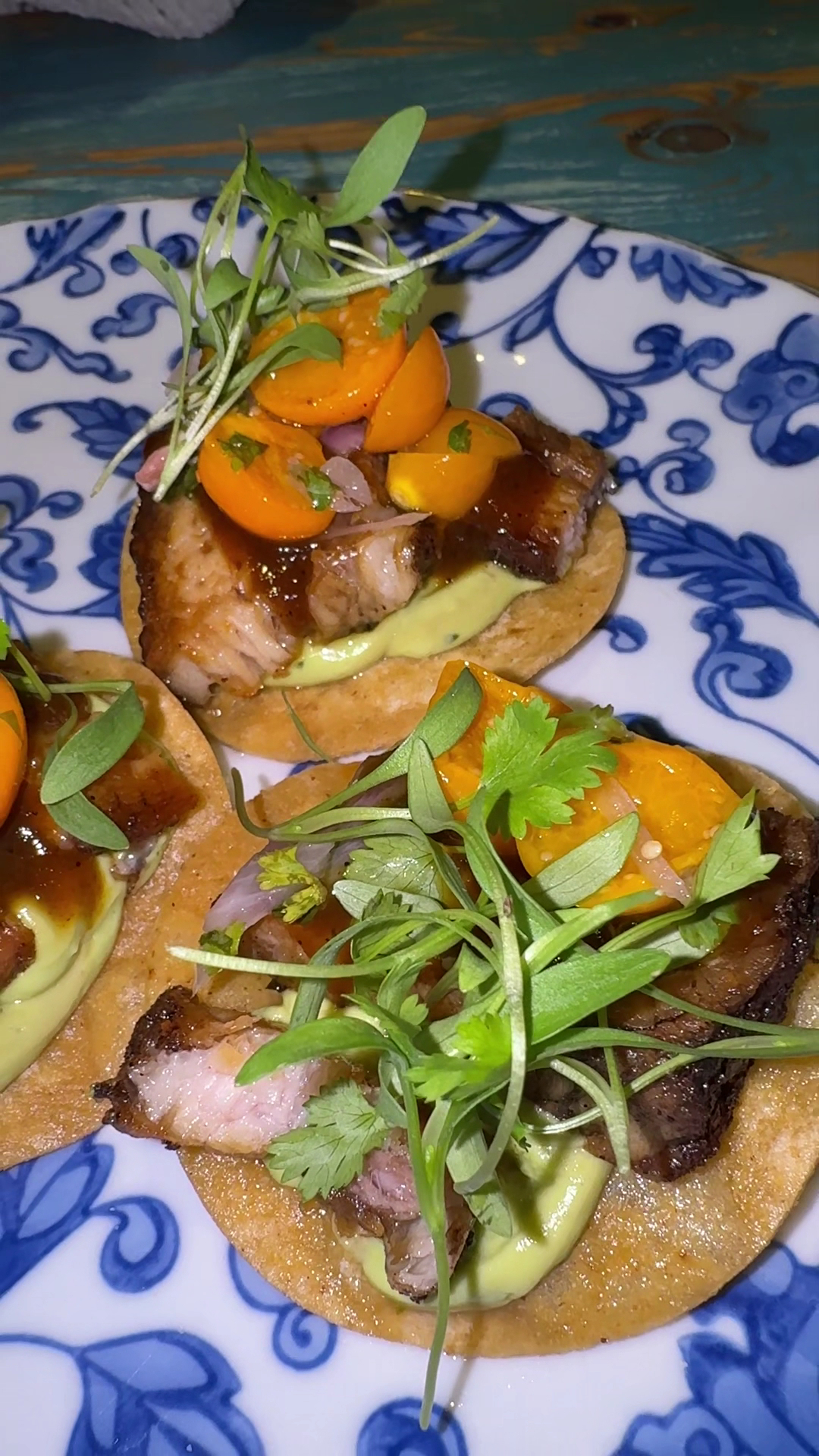 The tostadas were freakin amazing! Meat was cooked to perfection, tender and the gooseberry sauce lended a subtle sweetness to the flavors. The tostada was crispy & not soggy and complimented the tender meat.
